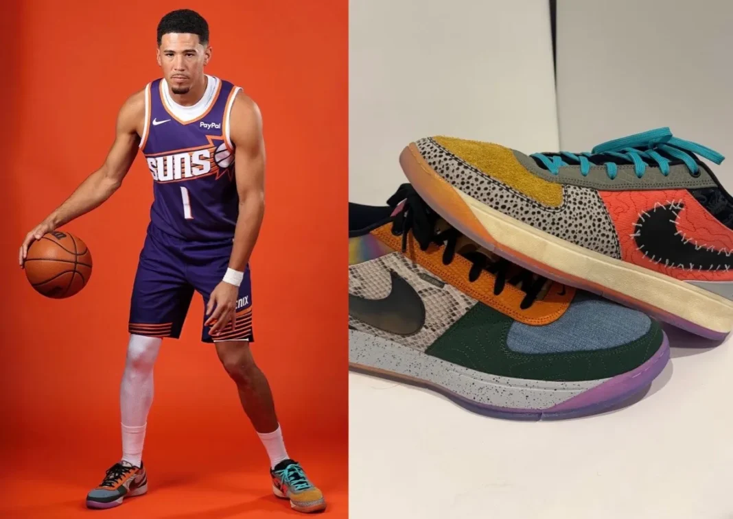 Booker initially showed off the pair at Suns Media Day, but fans got a first look at the sneakers ahead of Booker finally lacing them up for the first time on the court. The “What The” motif itself has long been a Nike staple, dating back to the 2007 What The Dunk, and it serves as a natural landing place for a mashup of aspects from previous colorways. With close to 30 Book 1 releases and several PEs in the collection’s history, the ideas for this one were abundant.