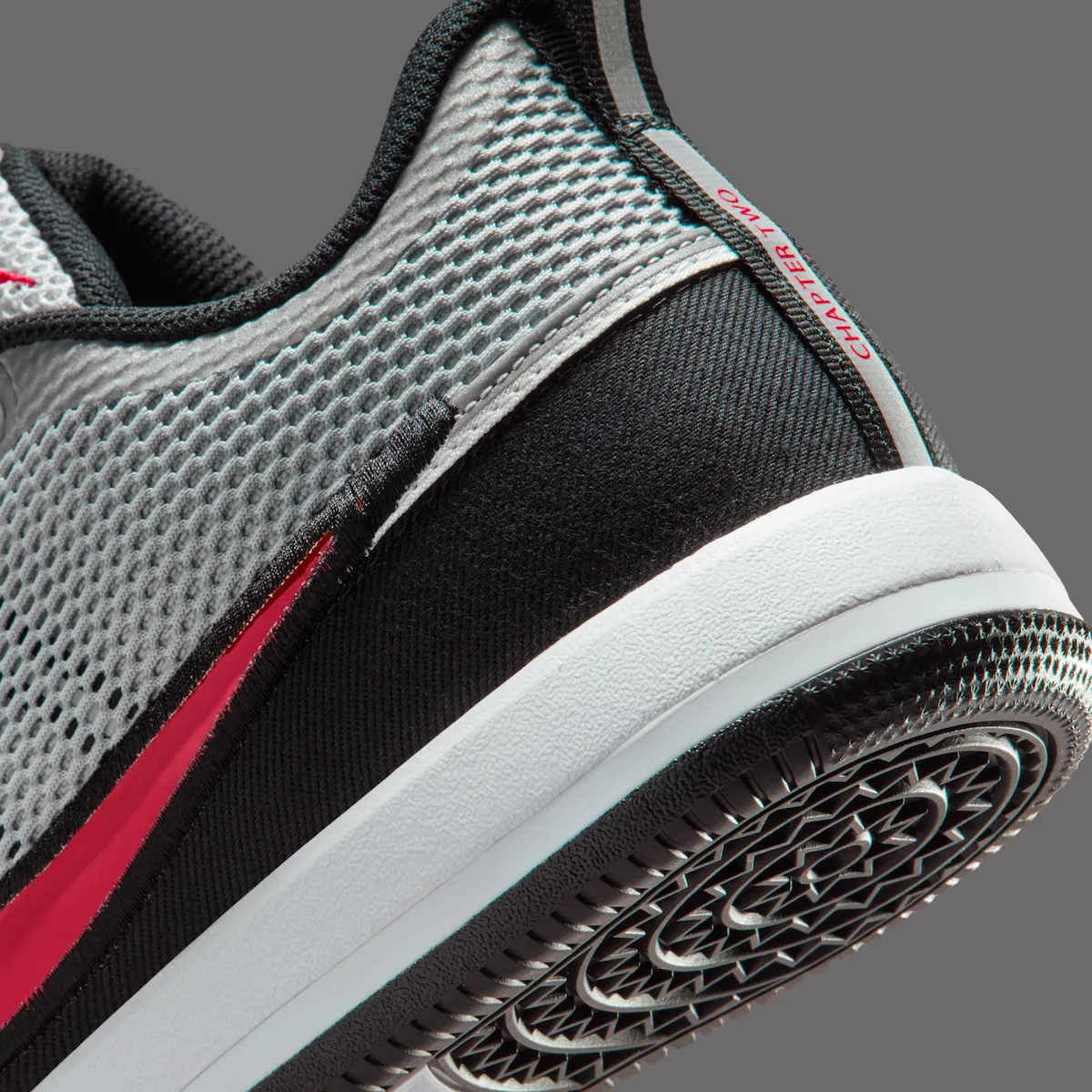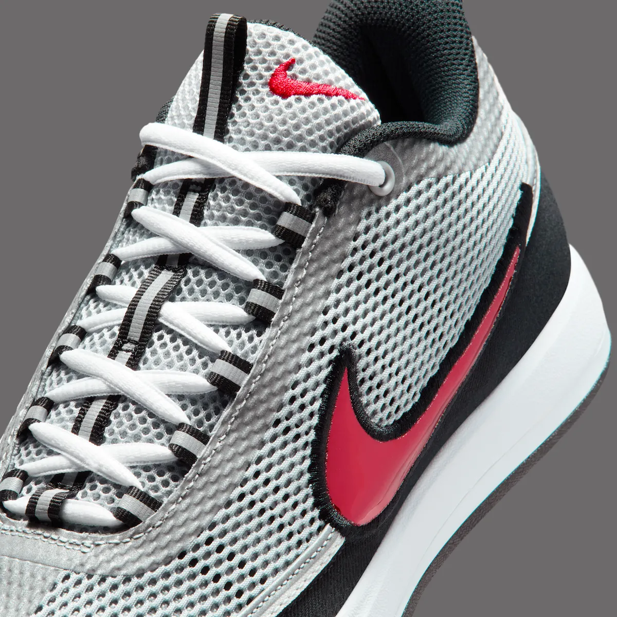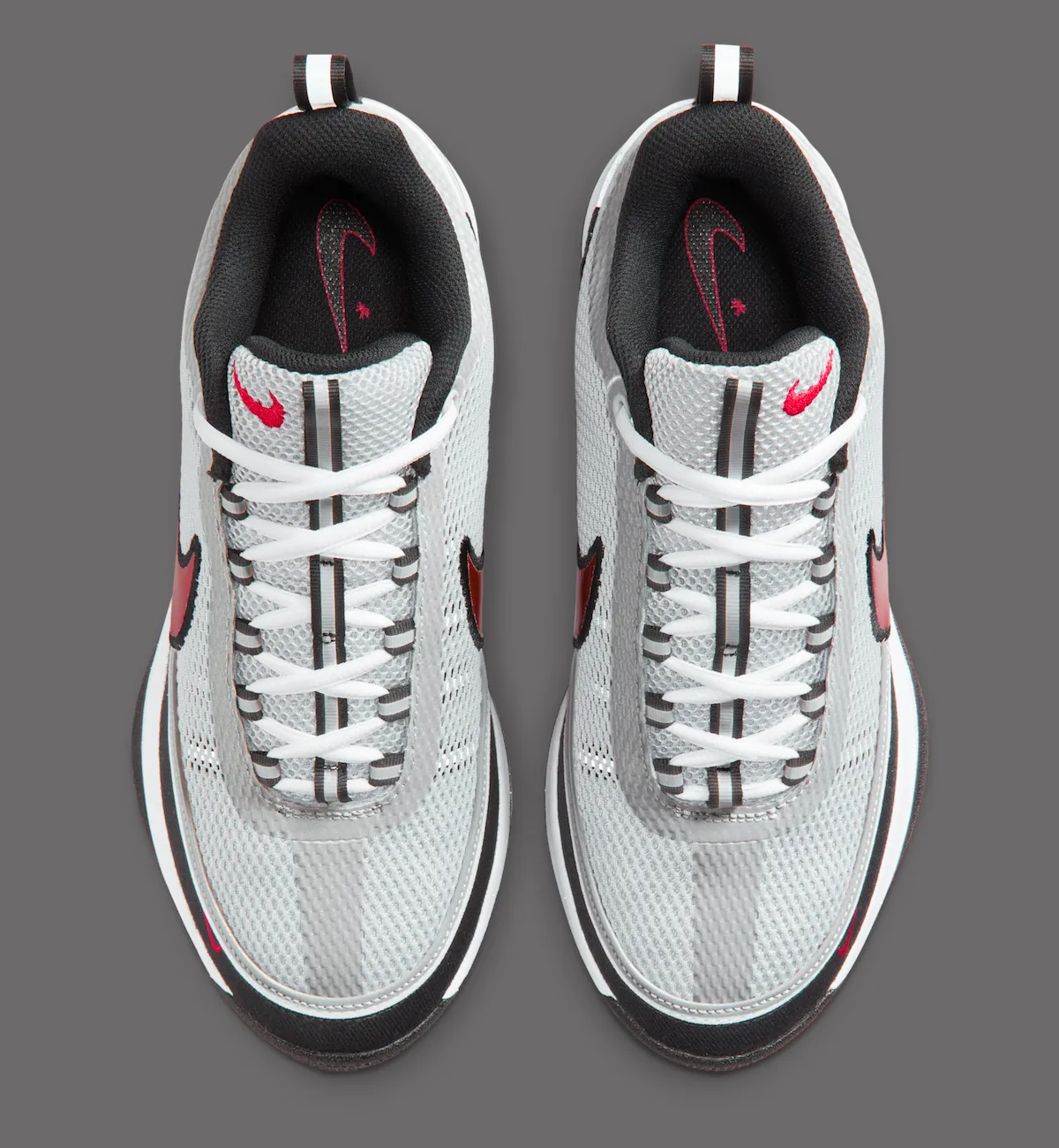 This “Spiridon” colorway takes inspiration from the iconic Air Zoom Spiridon. It features a silver mesh upper, bold red accents, and reflective 3M detailing. A black mudguard and metallic red Swoosh complete the eye-catching look.