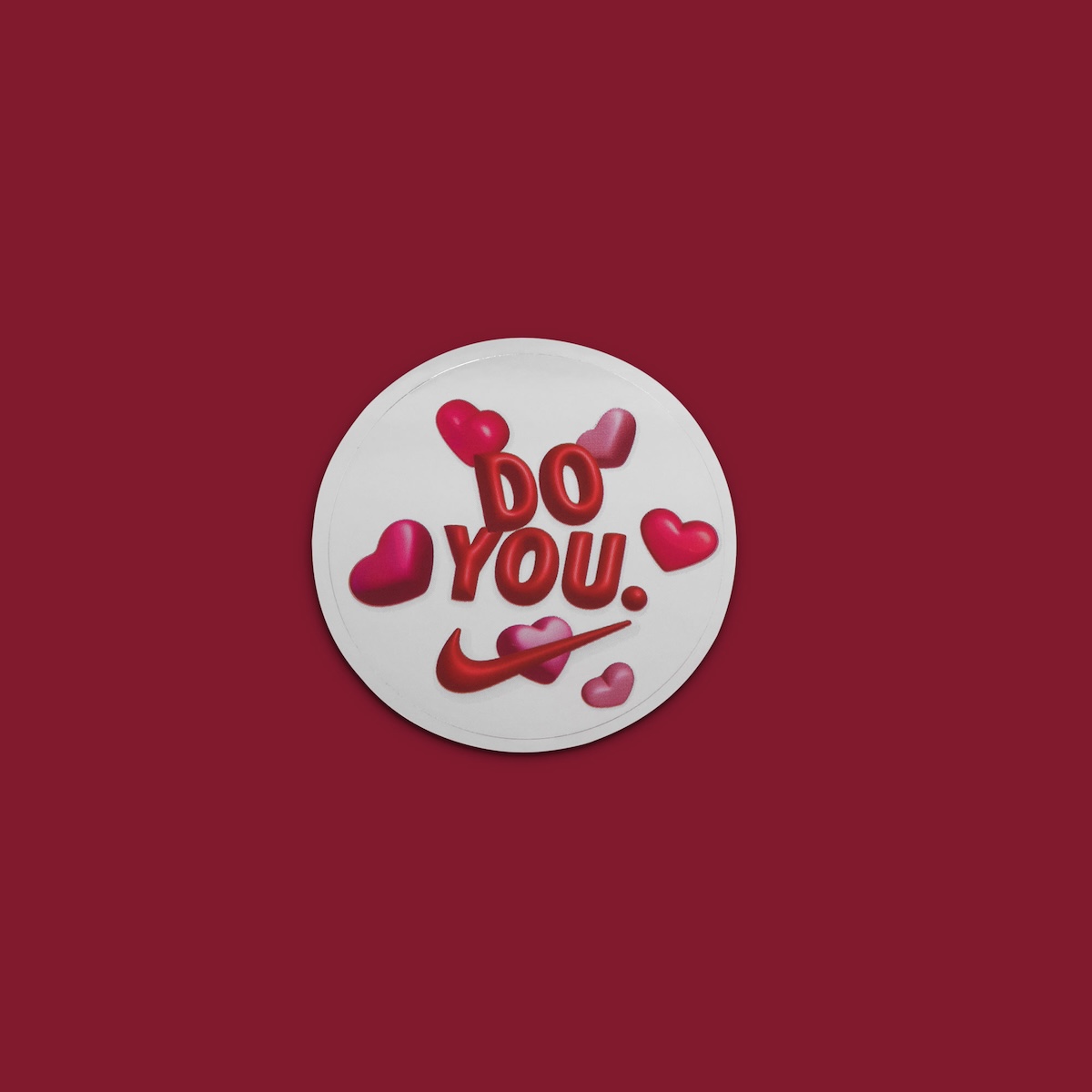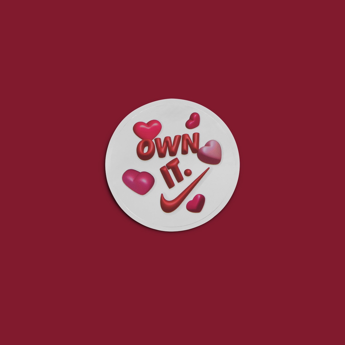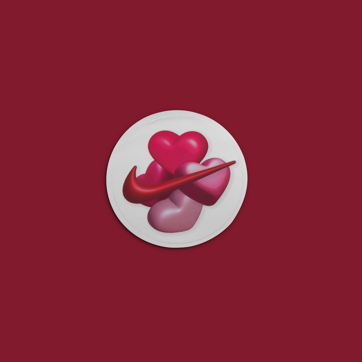 Red patent hits the toe and mid panels first, then pink overlays wrap around them to soften the look. The matching pink sole keeps the look cohesive. A “Be Me” message appears on the inner tongue, framed by heart graphics that highlight the self-love theme. The outer tongue adds a red heart with Nike branding, and themed stickers continue the Valentine narrative.