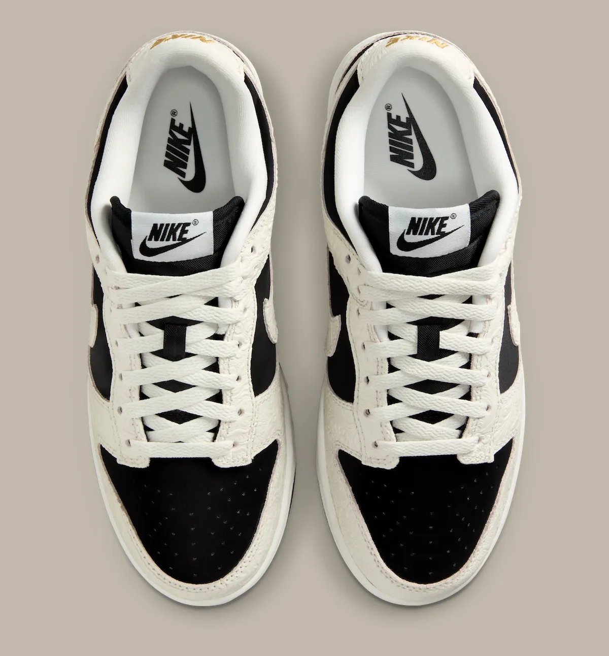 Even with the ornate overlays, the Dunk Low shape stays untouched, which helps the pack feel familiar to long-time fans. That sweet spot between basic colorblocking and more elevated texture is what gives these pairs their own lane, as was the case with some previous premium Dunk efforts that became near-instant sell-outs.