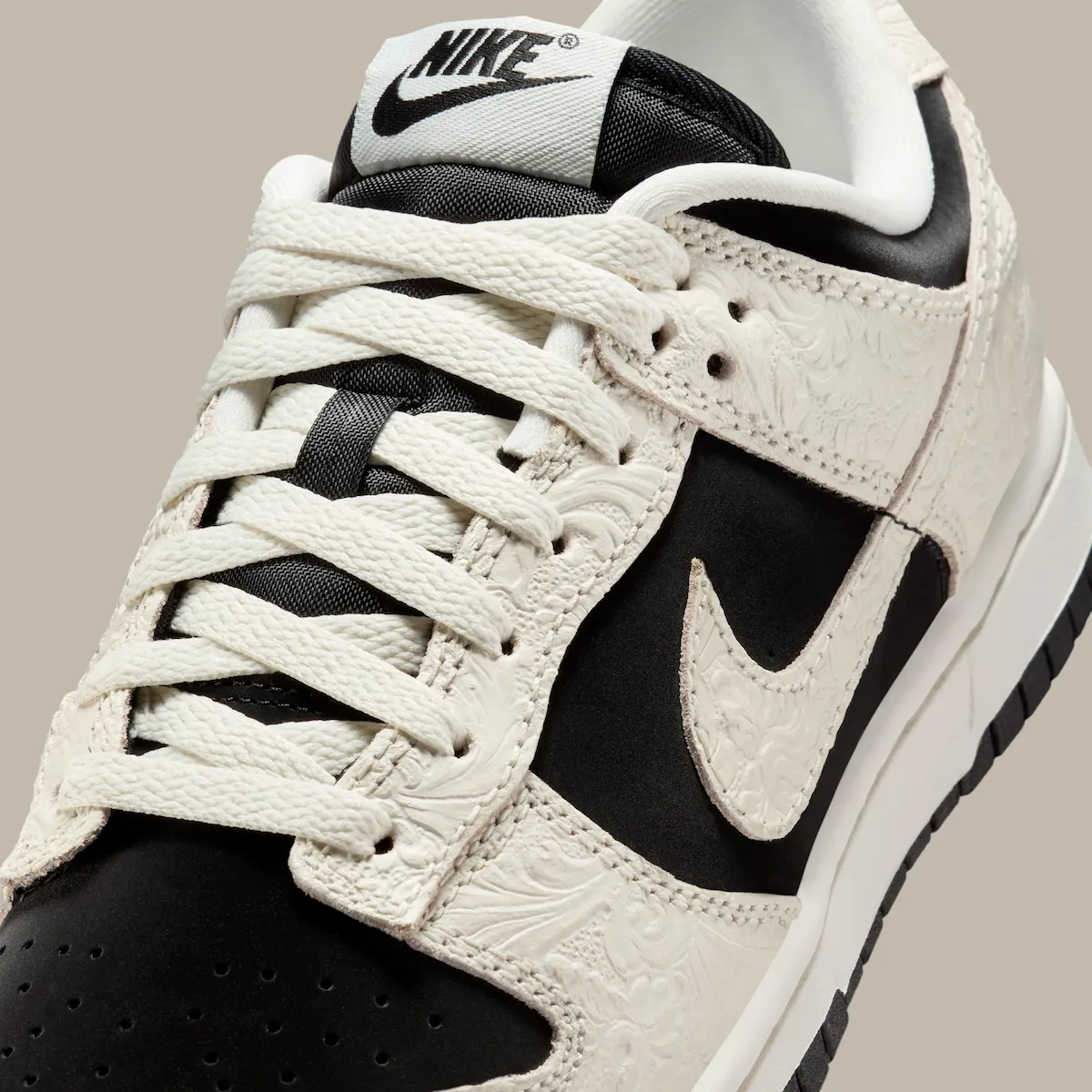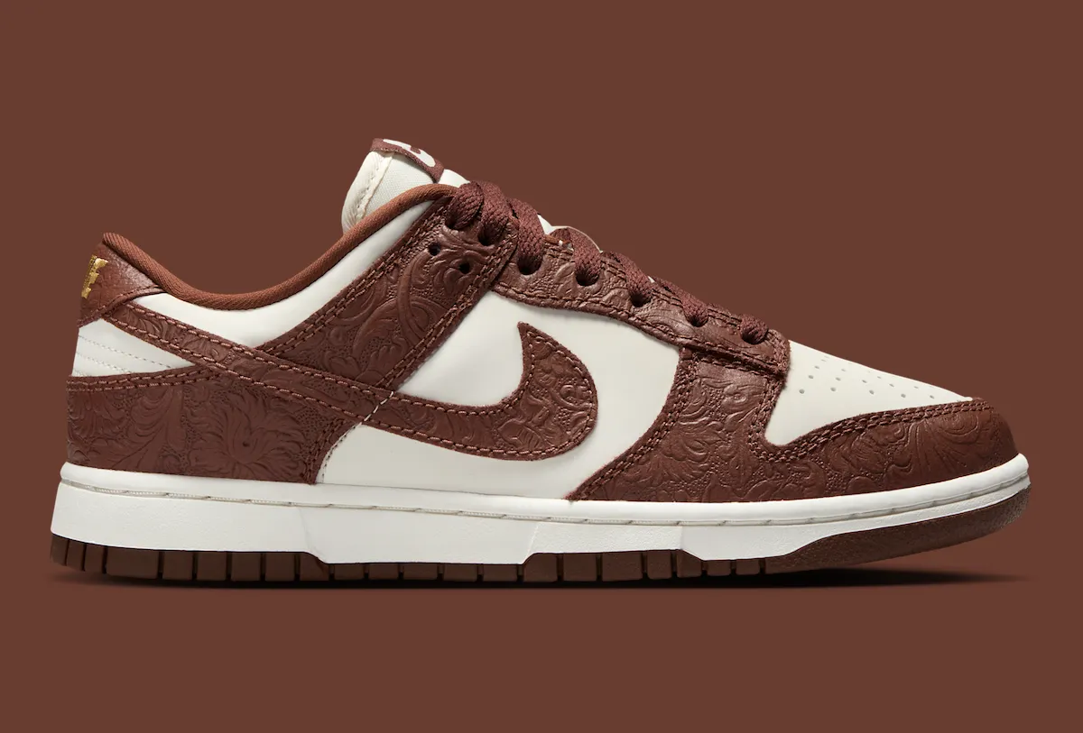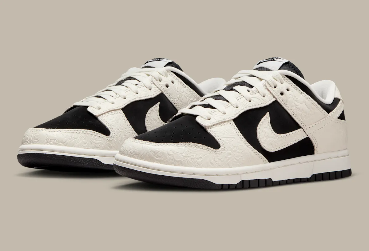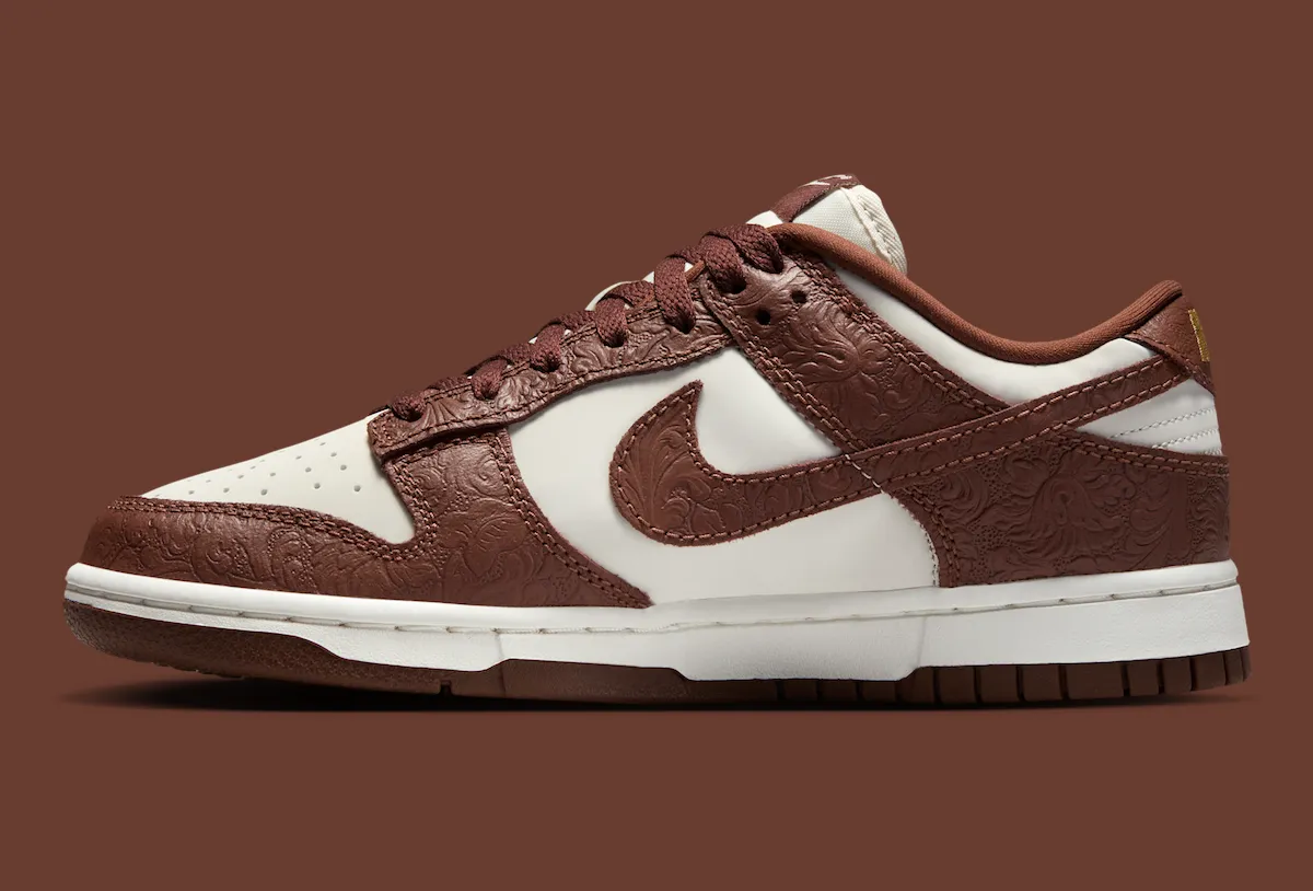 The Nike Dunk Low “Embossed Baroque” Pack reimagines one of Nike’s most recognizable silhouettes by replacing the standard smooth panels for an embossed, artisanal treatment. Nike has experimented with upscale textures in the past, but the Baroque Pack doubles down on that sculpted-leather look normally found on heritage boots and luxury accessories.