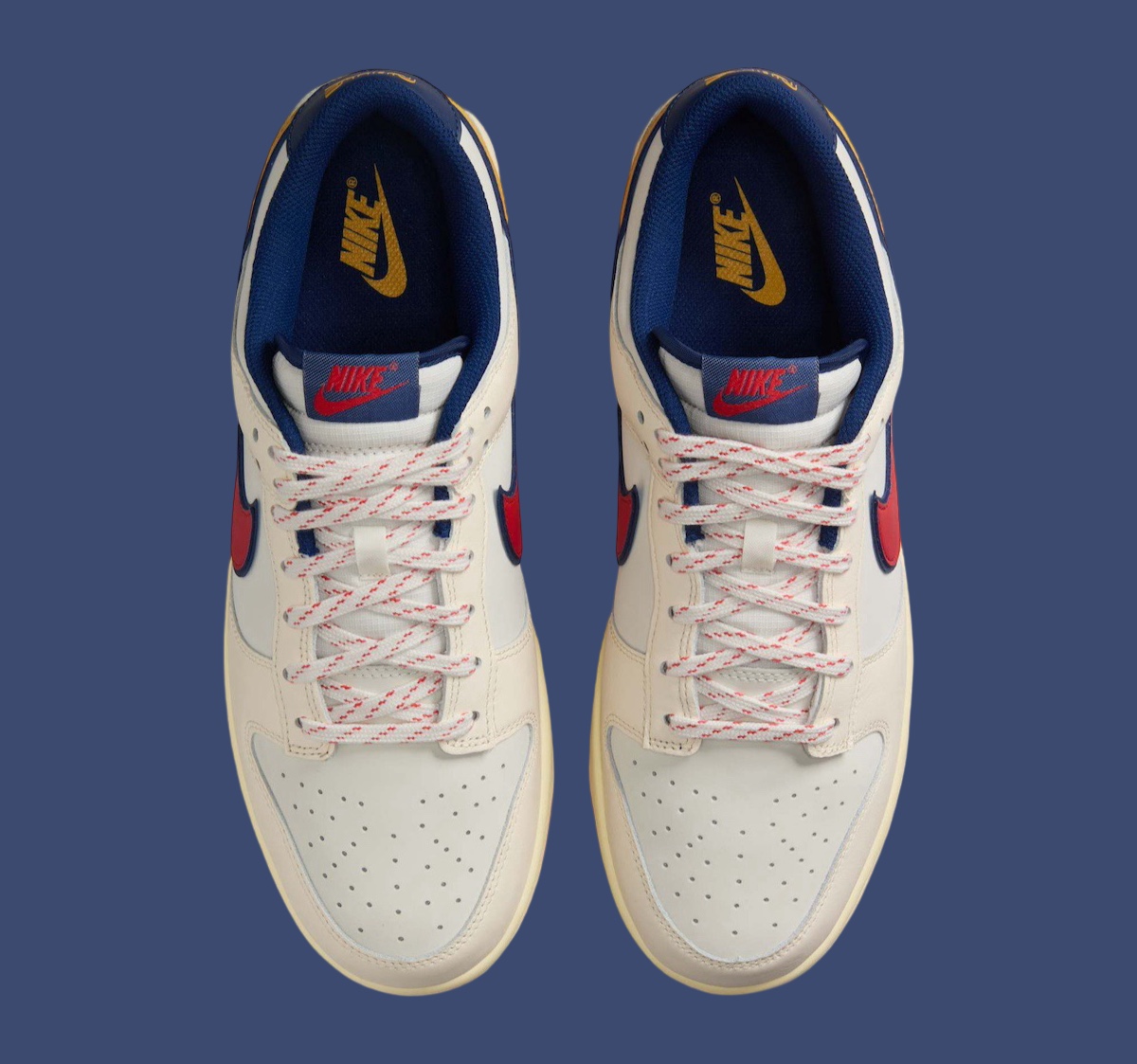 The Dunk Low in the “Retro Pack” shines with a cream leather base, featuring a red-to-orange gradient Swoosh that mimics bold pixelated graphics. This unique Swoosh design brings a vibrant pop, capturing the essence of classic arcade games. Enhancing the throwback look, the laces showcase pixelated detailing, and the heel displays branding elements inspired by vintage gaming themes. The sole’s sail and crimson tones complete the look, striking the perfect balance between retro appeal and contemporary flair.