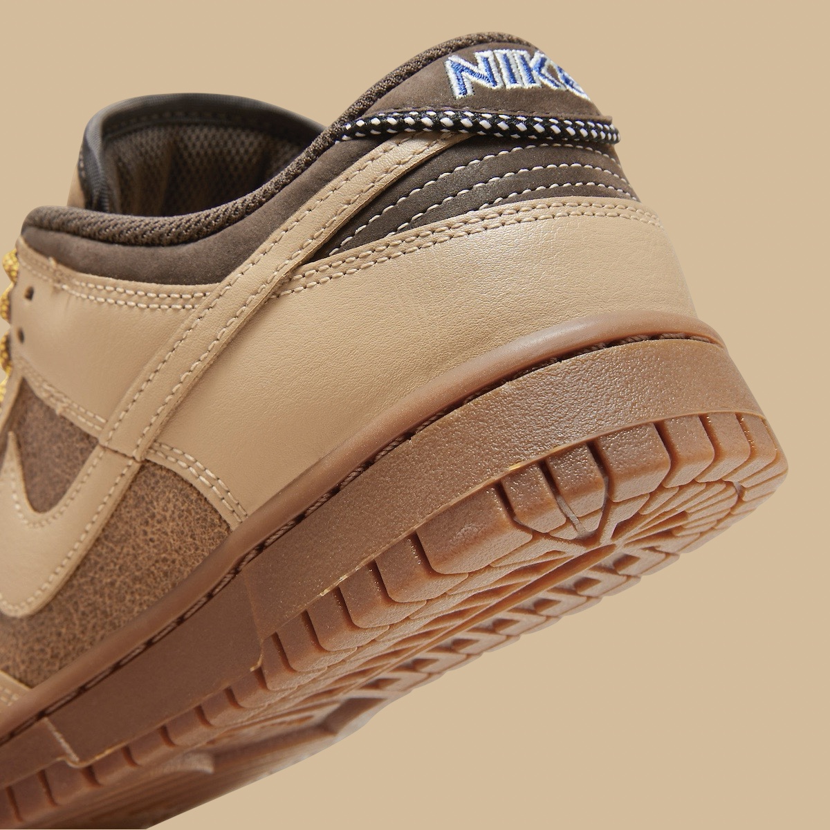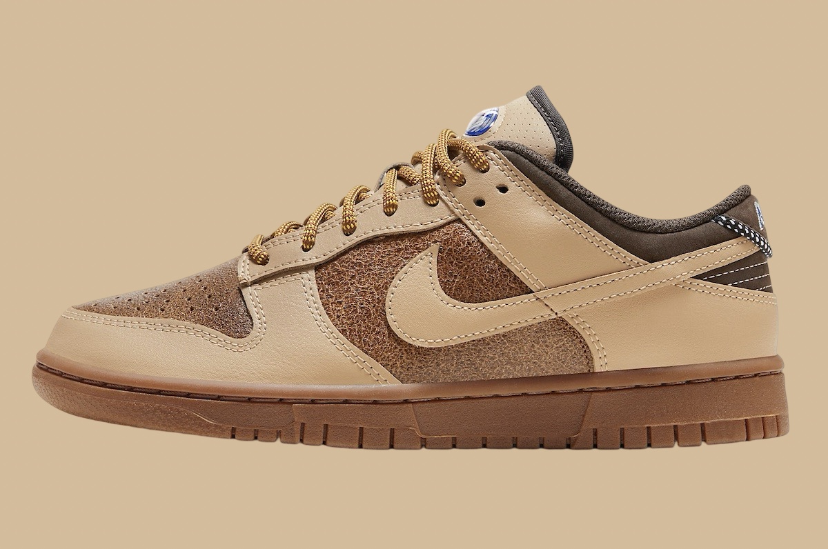 Nike’s Dunk Low LX pays tribute to 1972. It boasts Hemp, Gum Medium Brown, Light British Tan, Gym Red, and Light Armory Blue hues, capturing Nike’s legacy while embracing modernity.