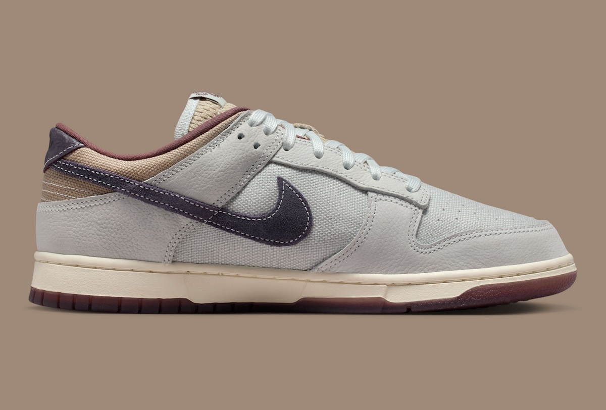 The Nike Dunk Low “Off-White/Spruce Aura” takes a quieter path, and that’s where its strength sits. Instead of loud color, this pair leans into materials. Off-white leather is paired with canvas panels, giving the upper a softer, more lived-in look than most Dunk Low sneakers.