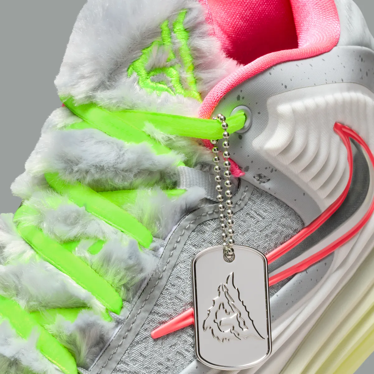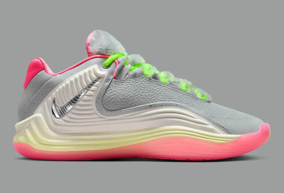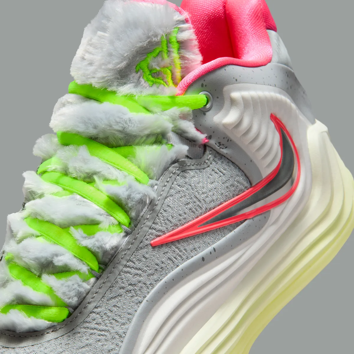 This Halloween-inspired edition combines furry grey tongues with cement-textured uppers for a moonlit look. Neon green laces and hot pink midsoles add a shock of energy against the muted greys, while metallic silver Swooshes reference Nike’s own “Silver Bullet” Air Max 97. On the inside, flannel-patterned insoles and an updated GA logo contribute to the chilling, otherworldly detail to give it that perfect spooky season chill. Sneakerheads love that kind of storytelling detail.