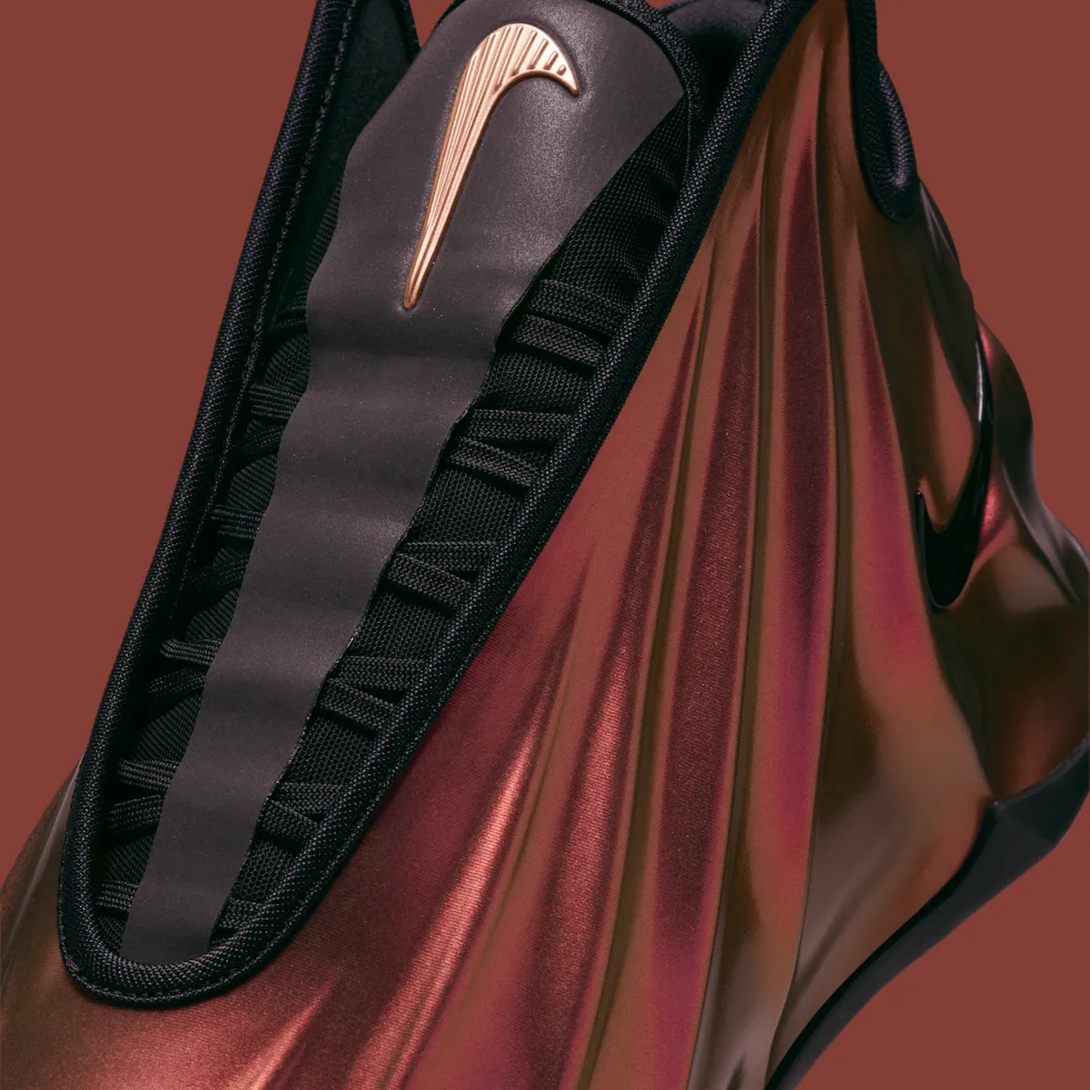 The Nike GT Future “Copper Egg” is a standout colorway, introduced by Nike footwear designer Frank Cooke. It features a one-piece molded Foamposite upper with a striking iridescent copper finish. White Swoosh logos appear on the tongue and lateral heel, adding contrast. Completing the look, a Silver outsole enhances the sleek aesthetic.
