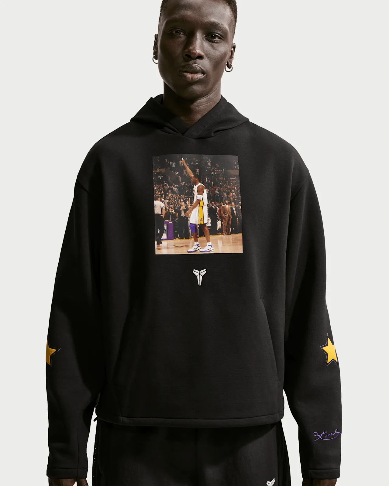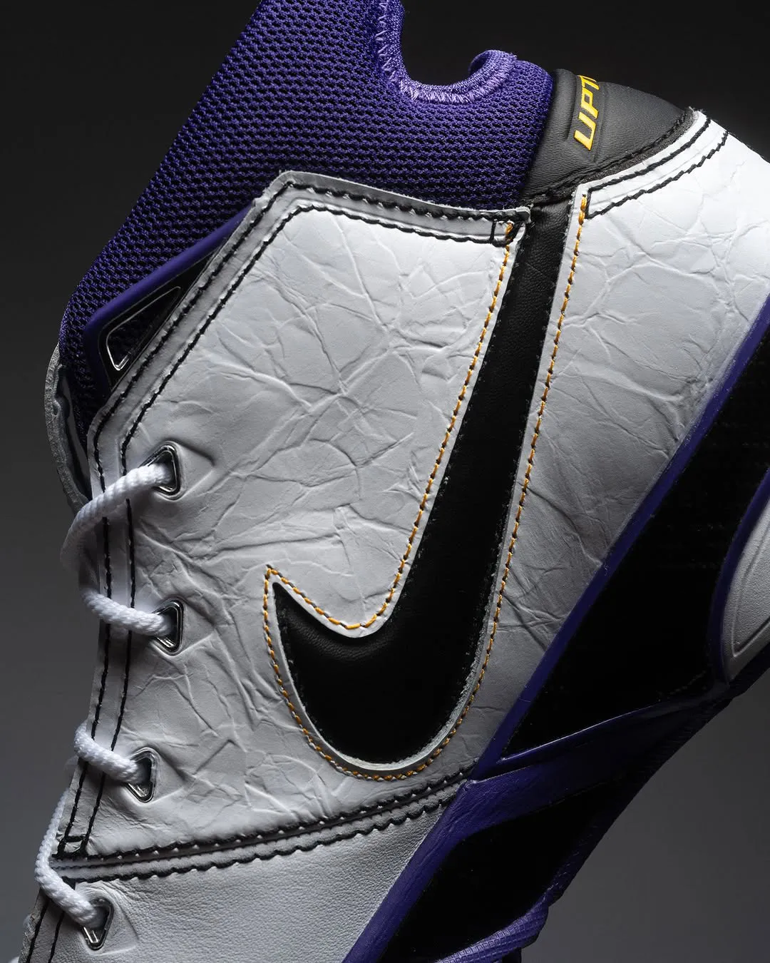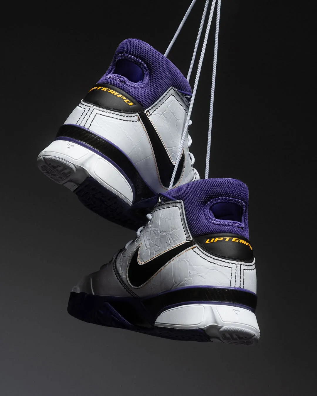 This version features the signature Lakers mix of White, Black, and Court Purple. The upper uses premium leather, while Zoom Air cushioning and a carbon fiber shank deliver game-ready performance. Inside the shoe, the insole pays homage to four cities—Los Angeles, Houston, Atlanta, and Denver—each tied to Kobe’s scoring sprees.