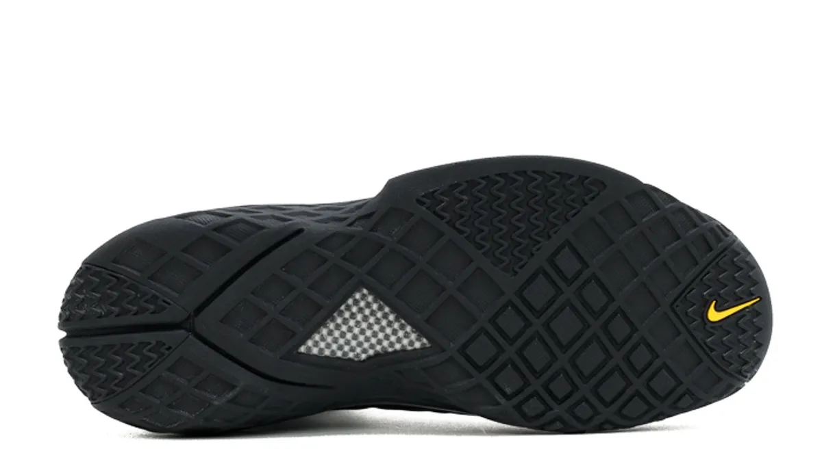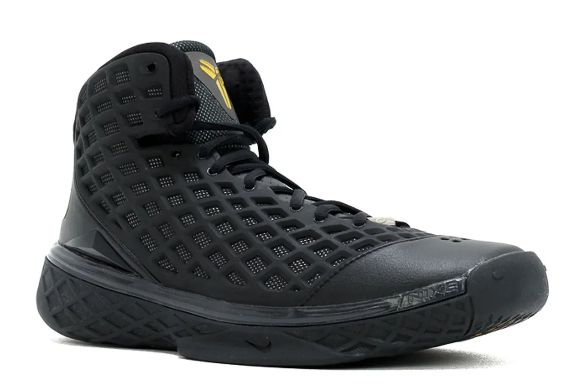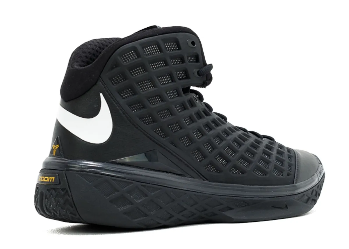 Named for its similarities to the killer whale, “Orca” features a black and white color scheme with a sleek contrast from the crisp white Swoosh and small touches of Canyon Gold. The unique cage-like upper overlays a breathable mesh while carbon fiber reinforcements provide maximum court stability, signature of Kobe’s line.