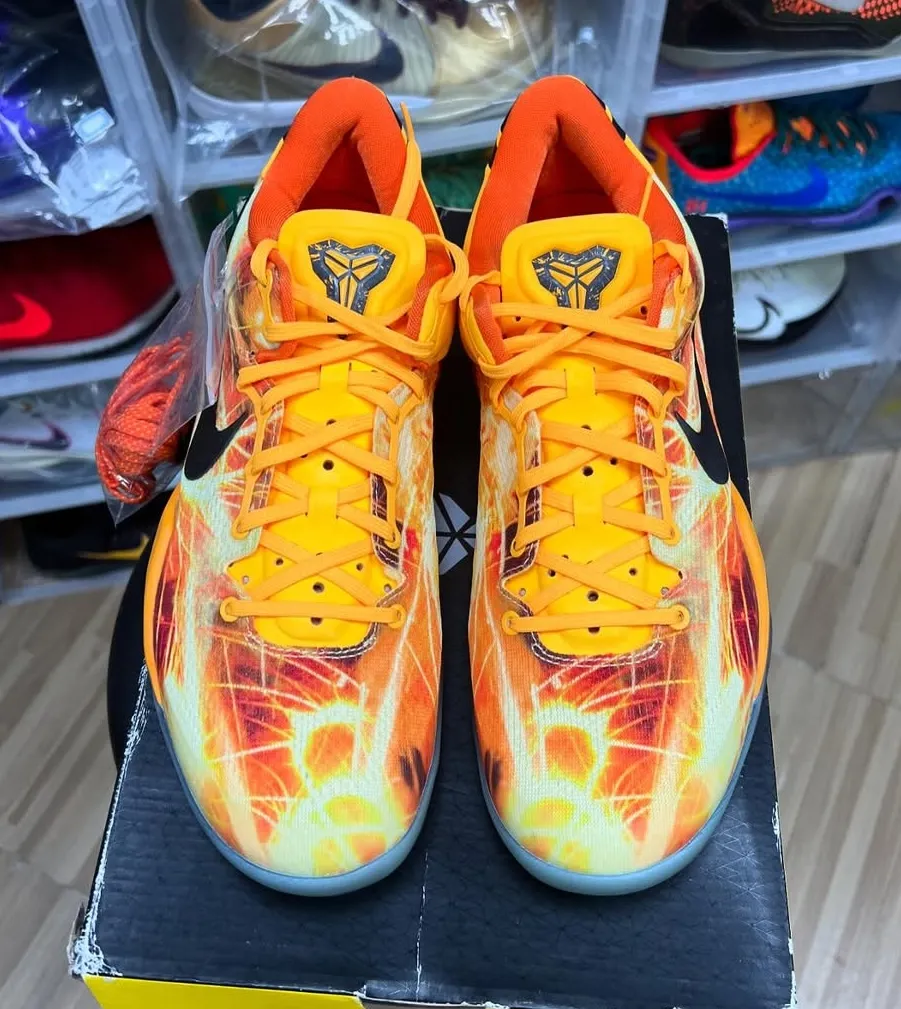 Originally released in 2013 as a China-exclusive, the Nike Kobe 8 Protro “Shanghai Fireworks” quickly became a cult favorite. Its limited availability, paired with a fearless visual direction, helped the pair stand apart during an era dominated by safer performance colorways.