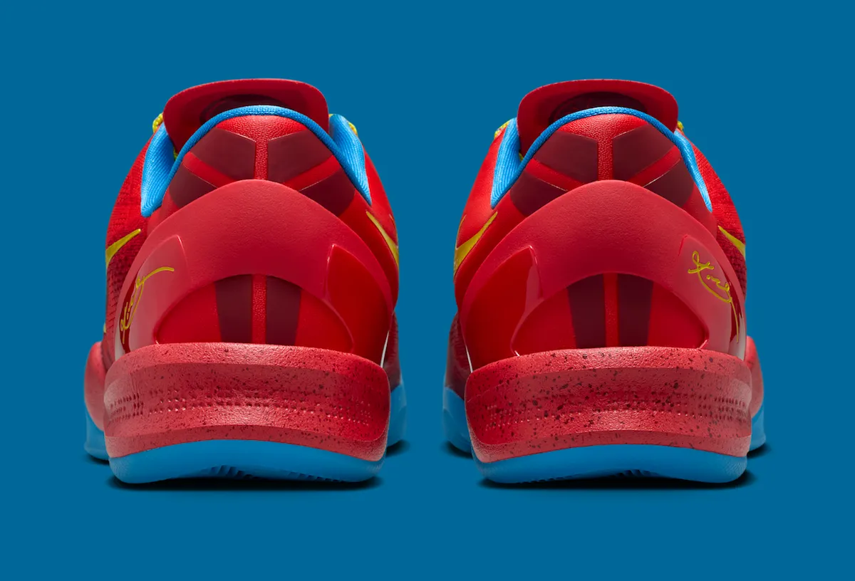 Adorned in a Light Crimson upper, Bright Citron on the laces, and contrasting Swooshes, this sneaker is anything but understated. To complete the look, a translucent Vivid Blue outsole provides a nice pop of contrast on the underside. On the insole, the sneaker features a small hidden horse emblem on the tongue. A subtle yet symbolic nod to fans aware of Kobe’s connection to the zodiac.