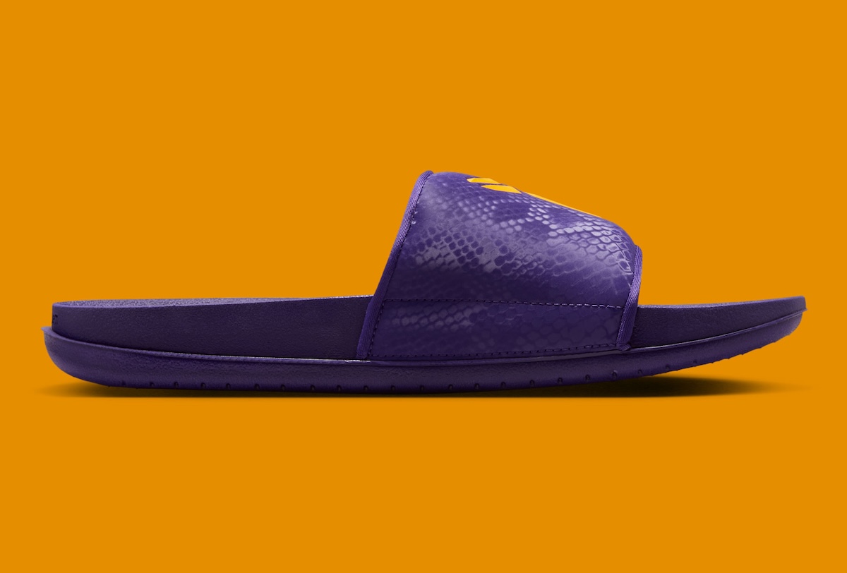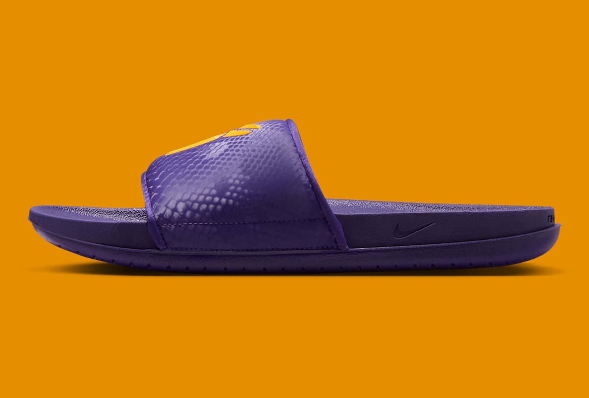 Footwear supports the rollout rather than leading it. New Kobe Offcourt Slides arrive in multiple colorways, designed for comfort and routine wear. Compared to earlier Kobe sandals, these feel more intentional, both in materials and shape.