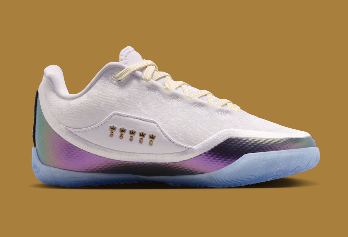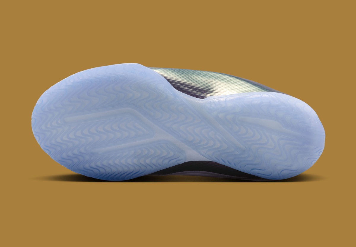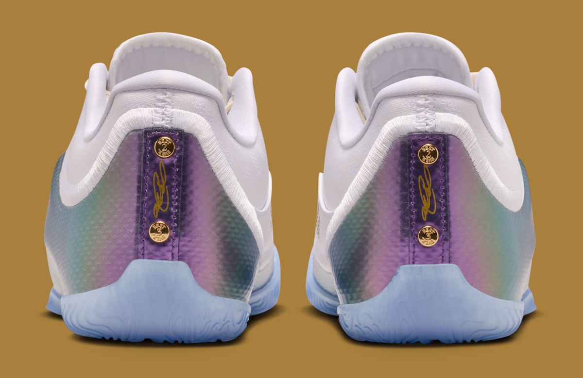 The “For The Record” colorway reflects that legacy with a refined design. It features an iridescent purple and green mudguard paired with a softer purple mesh upper. The number 38,388 appears on the medial side, marking the historic scoring total like a badge of honor.