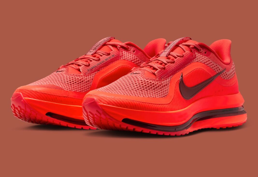 Black branding and the sculpted Zoom Air system cut through the crimson shades, adding contrast that recalls past Pegasus pairs built around sharp color blocking. That small detail helps the shoe feel familiar, even as the palette moves in a bolder direction. The setup looks ready for daily miles, but it also has enough edge for casual wear, which has become a quiet strength of the Pegasus line.