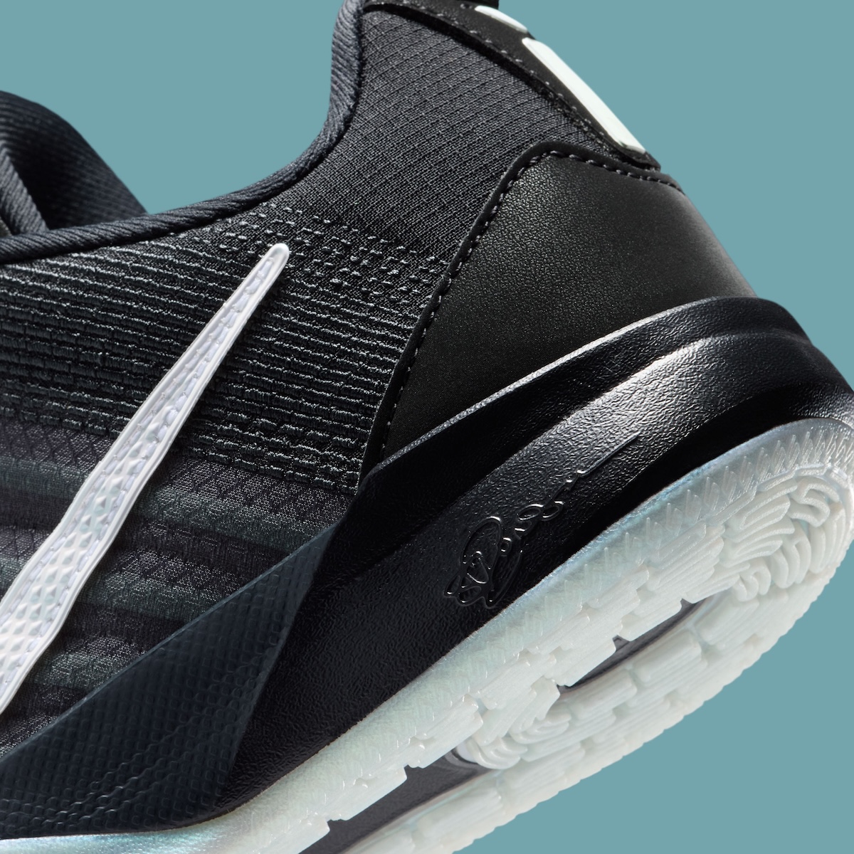 The upper mixes Black, Dark Smoke Grey, and Iron Grey for a layered finish. Tightly woven mesh blends with textured panels for stability. The bright white Swoosh cuts through the dark base, adding a crisp contrast. I like how the mint lace loops give the shoe a soft, cool edge.