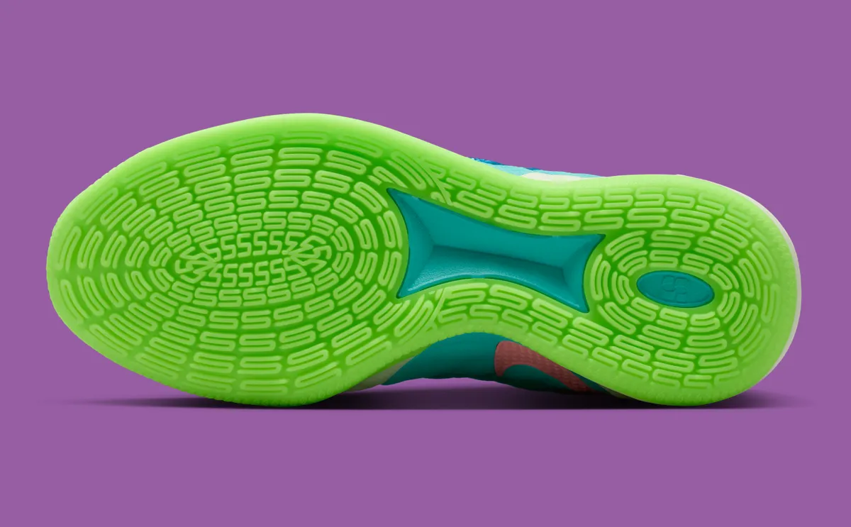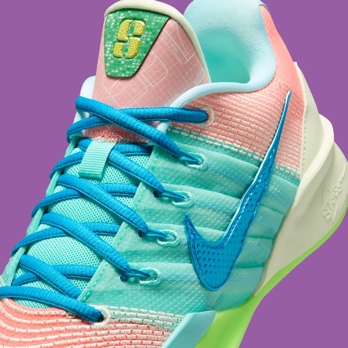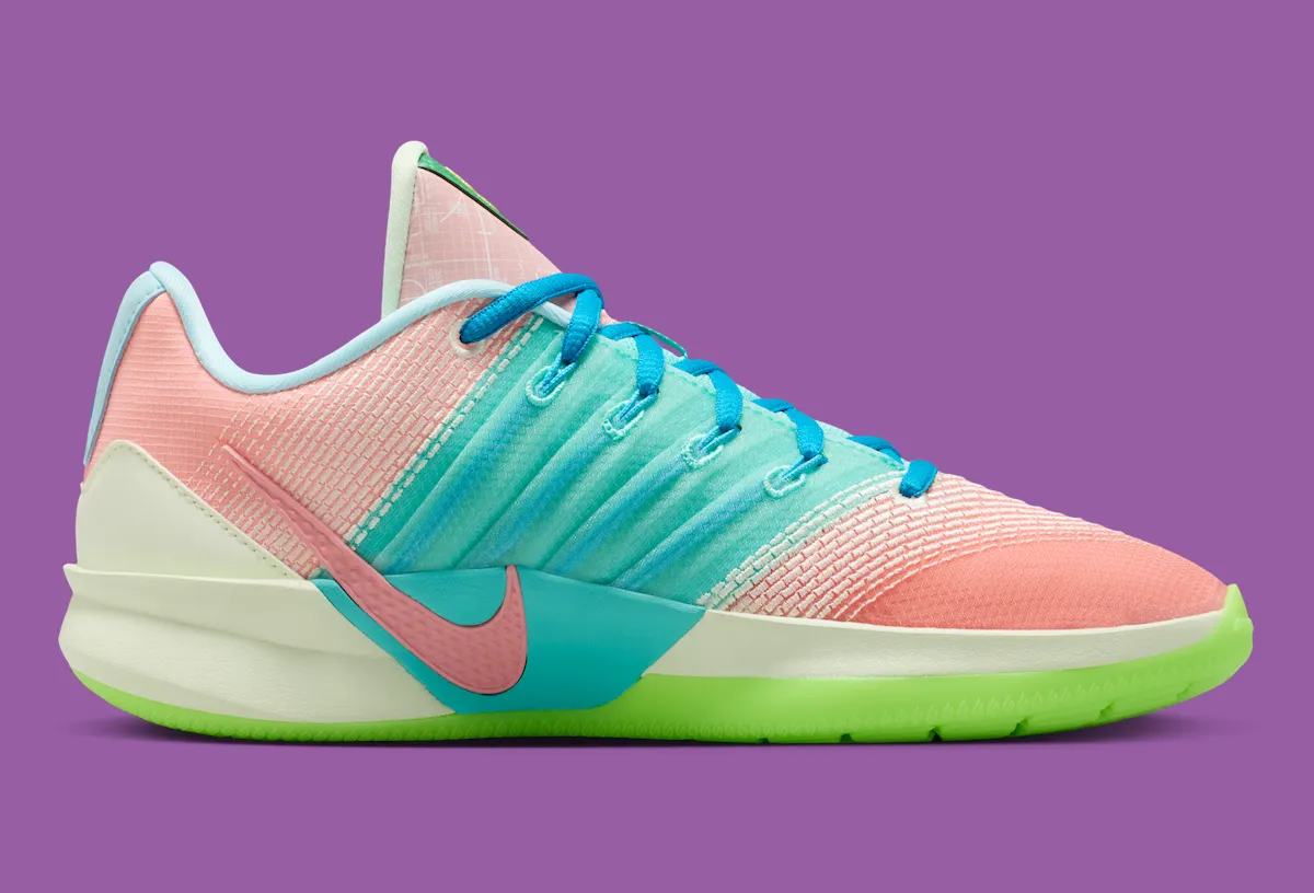 Instead of following one theme, this Sabrina 3 stitches together multiple past Sabrina colorways into a split design that feels intentional rather than chaotic. Pastels meet neons, textures overlap, and contrast drives the look forward. The alternating outsoles, flipped tongue graphics, and clashing lace choices add personality without breaking cohesion. It signals a direction where celebration replaces restraint.