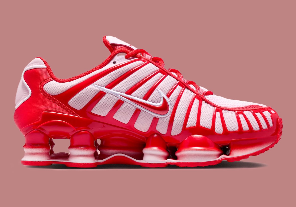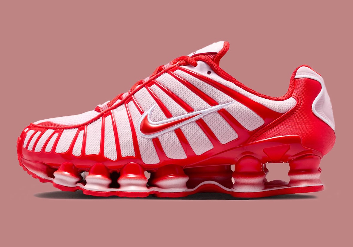 The Nike Shox TL “Pink Foam/Habanero Red” arrives with confident timing, leaning into Valentine’s Day without losing its performance roots. The Shox TL has always favored impact over subtlety, and this colorway stays true to that lineage.