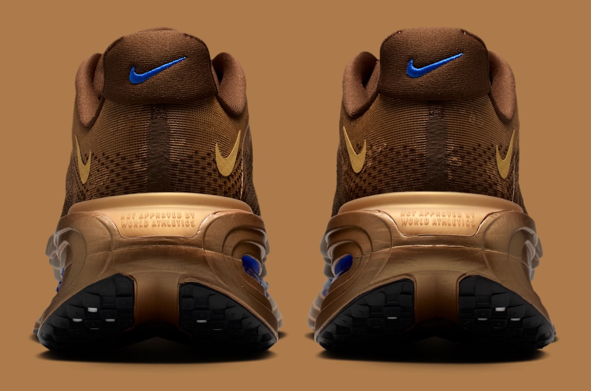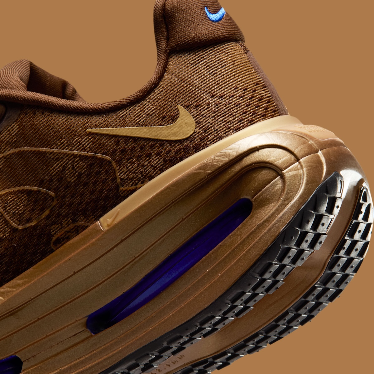 The sculpted midsole defines the silhouette. Bronze-tinted foam frames exposed Air Zoom units filled with Team Royal blue, creating contrast without overpowering the palette. That balance gives the pair a distinct identity within modern running footwear.