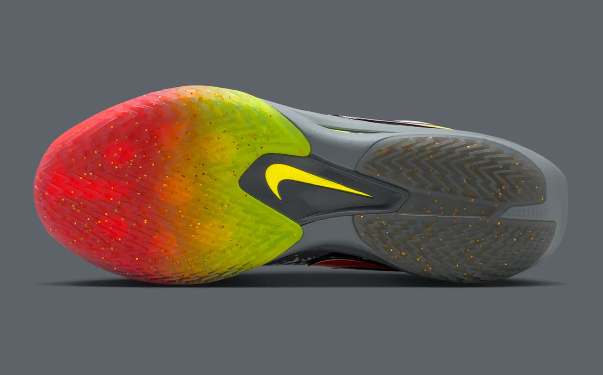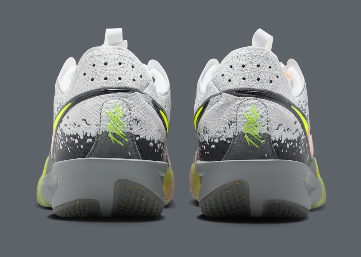 You’ll notice hi-vis gradients of green and red stacked on a clean neutral upper, which are reminiscent of the bright colorways that have become a staple on Ja Morant’s signature collection. Grimey fade reminiscent of snow on the ground is a snow-dusted heel and midsole, an ode to night games on the hardwood.
