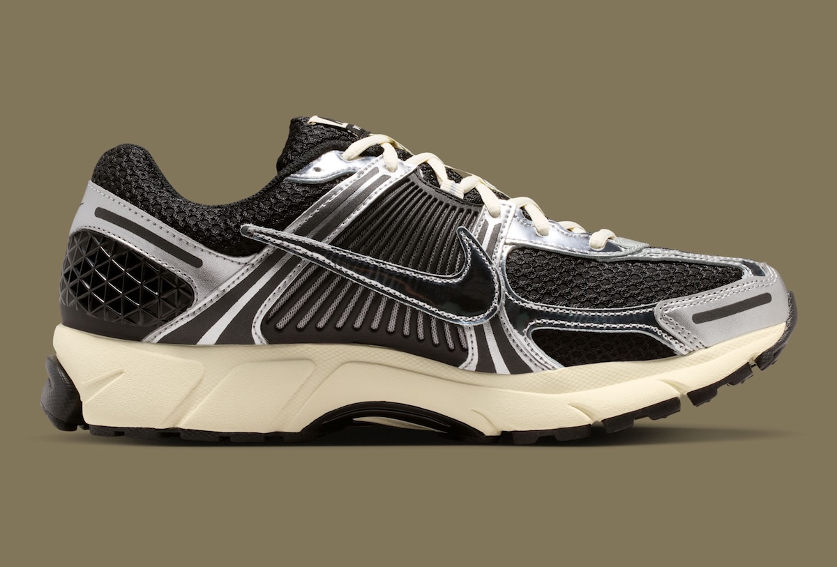 The Nike Zoom Vomero 5 “Black/Metallic Silver” release is no different. Paying homage to its predecessors, the shoe features breathable black mesh uppers, silver accents and molding, and a tight molded TPU over the midfoot. The addition of reflective accents and cage-like plating harkens back to Nike’s running shoes of the late-2000s while a white leather swoosh maintains a friendly silhouette. Neutralizing tones with off-white laces and a Coconut Milk midsole dials back the color scheme just enough to give it a worn in feel that’s true to modern retro-runners everywhere.