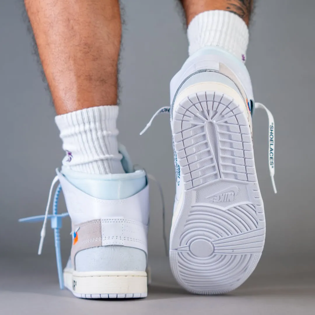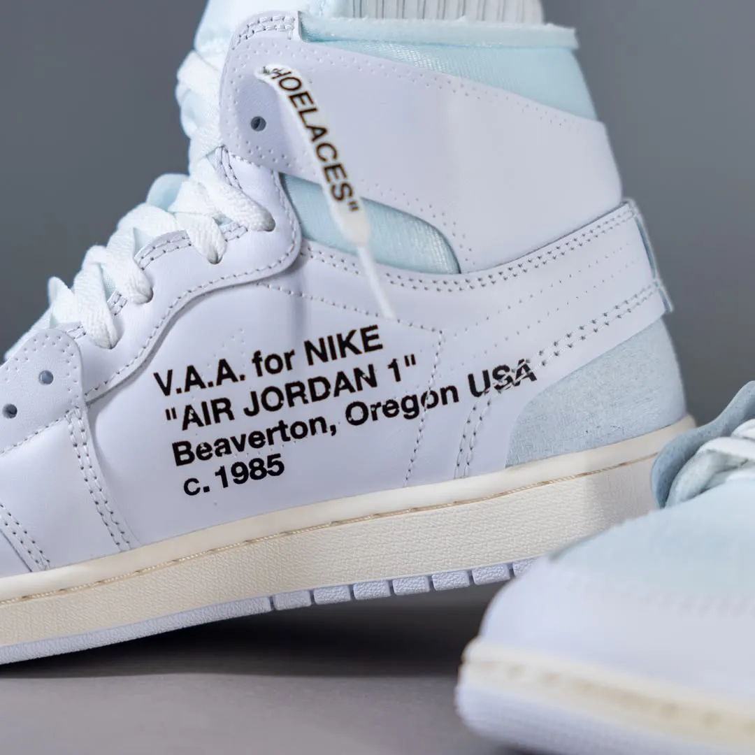 UPDATE 11/21/25: On-feet photos of the Virgil Abloh Archive x Air Jordan 1 “Alaska” have been revealed. The pair still channels the spirit of the 2018 Europe-exclusive, but the switch to “V.A.A. for Nike” on the medial side marks the line’s new direction. The deconstructed look, clean layers, and familiar details all come through on foot. No confirmed release yet, though a Spring 2026 launch remains the expected window.