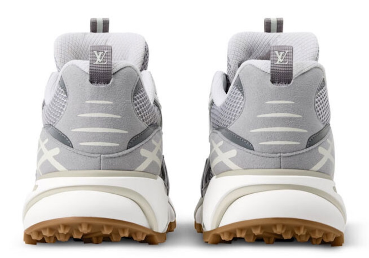 The bottom half gives the sneaker some real presence too. Its lugged outsole looks bulky at first glance, yet the shoe still comes off lighter than expected. Vuitton branding runs along the midsole in a way that feels noticeable without taking over the design. It is the kind of detail that blends into the shoe until you catch it up close.