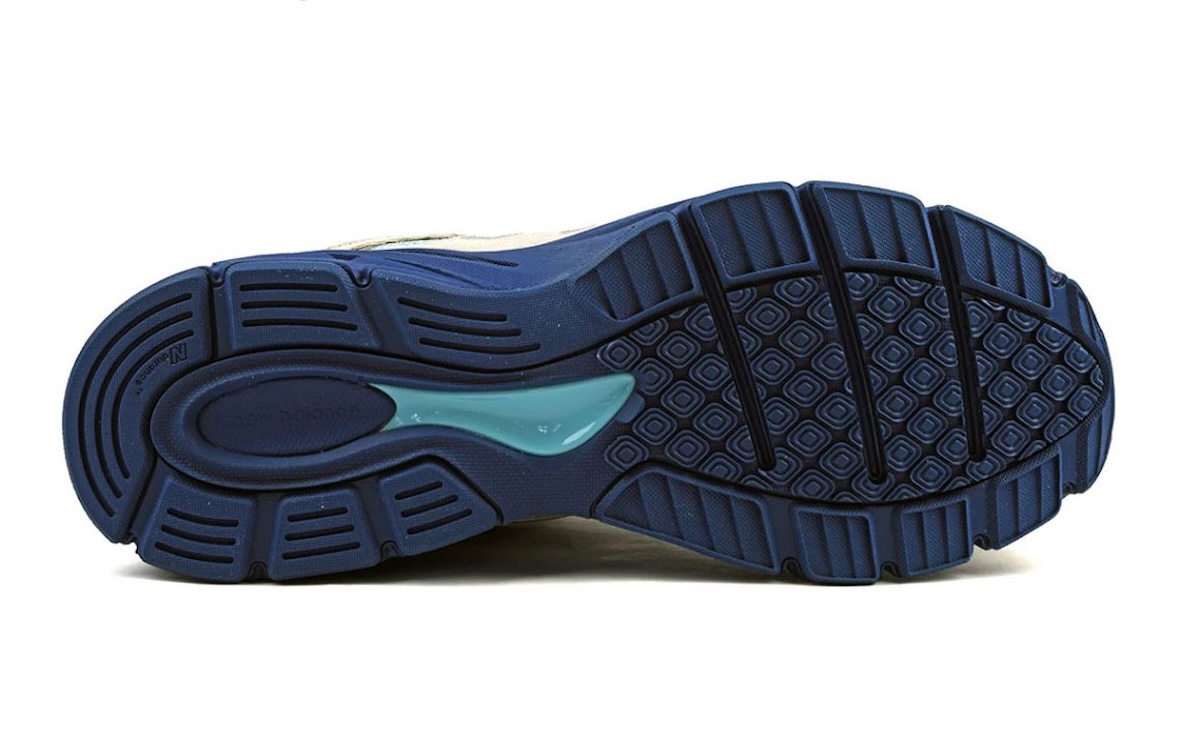Moonbeam suede uppers and Cloud Blue mesh overlays give this New Balance 990v4 Made in USA a clean, balanced look. Soft neutral tones are energized by electric blue accents throughout the design. Expanded mesh on the toe box, collar, tongue, and side panels is paired with lighter Cloud Blue suede, while grey hits around the trim and heel help sharpen the color blocking and give the shoe a more distinctive finish.