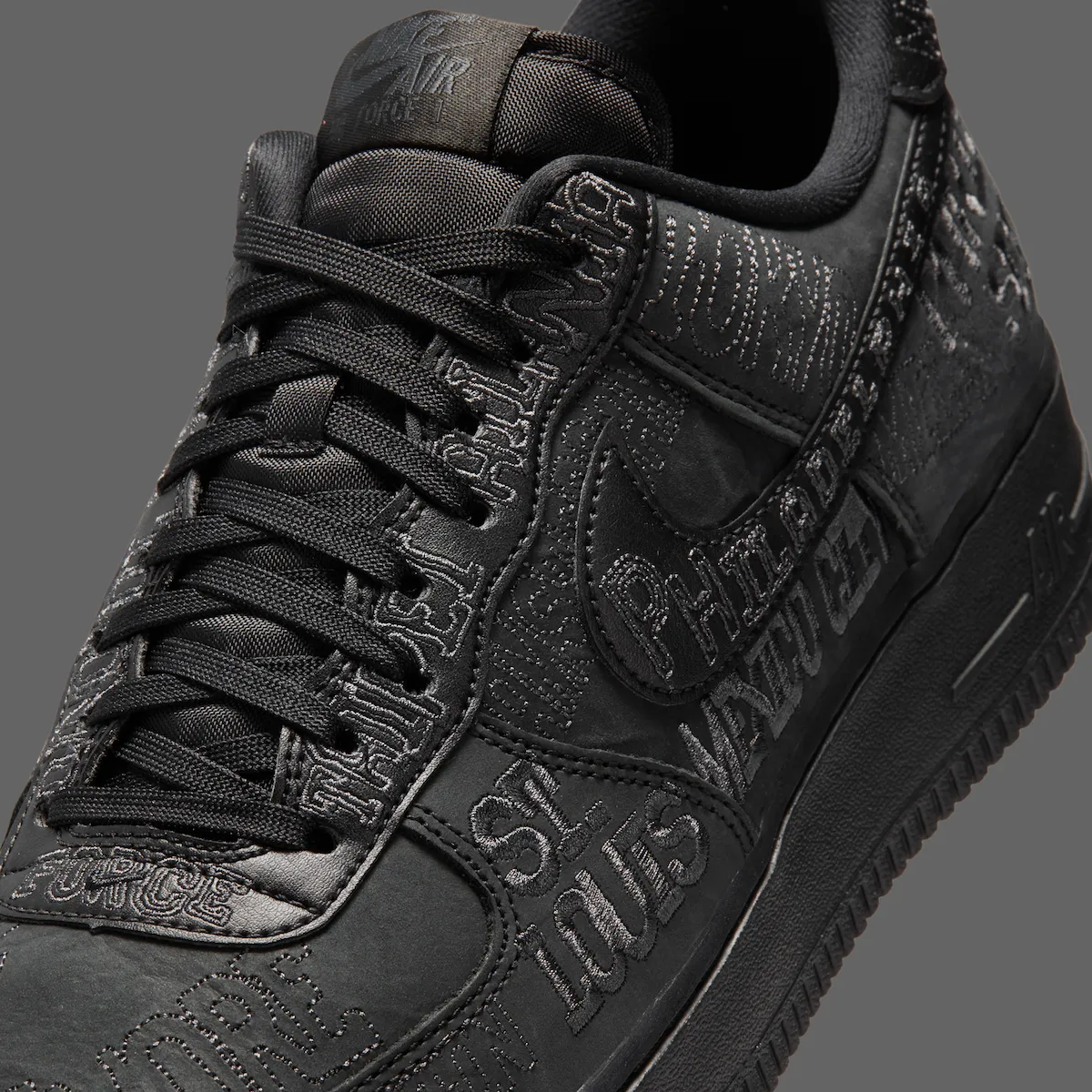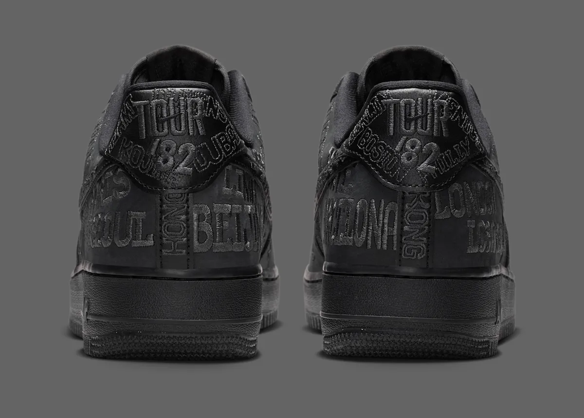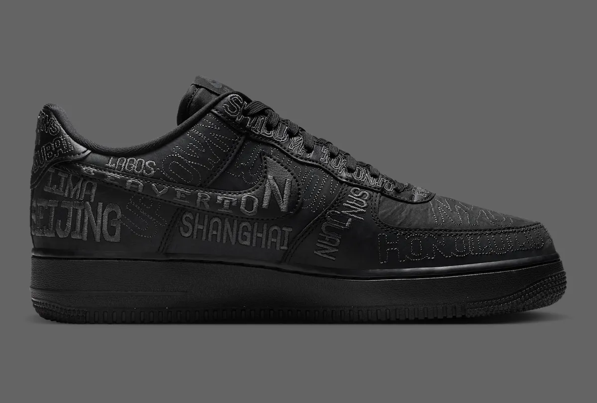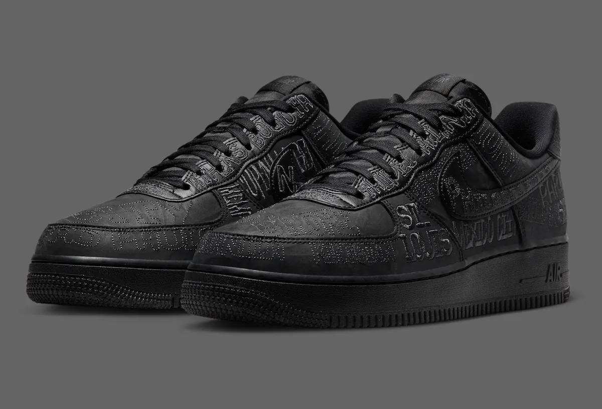 UPDATE 3/9/26: The Nike Air Force 1 “On Tour” will release in both adult and grade school sizing. Official images have also revealed a second colorway, introducing a stealthy all-black version alongside the original white pair. Both styles feature the same embroidered global city names across the upper, highlighting Nike’s worldwide presence. A release date has not yet been confirmed, but the Nike Air Force 1 Low “On Tour” Pack is expected to arrive in Spring 2026.