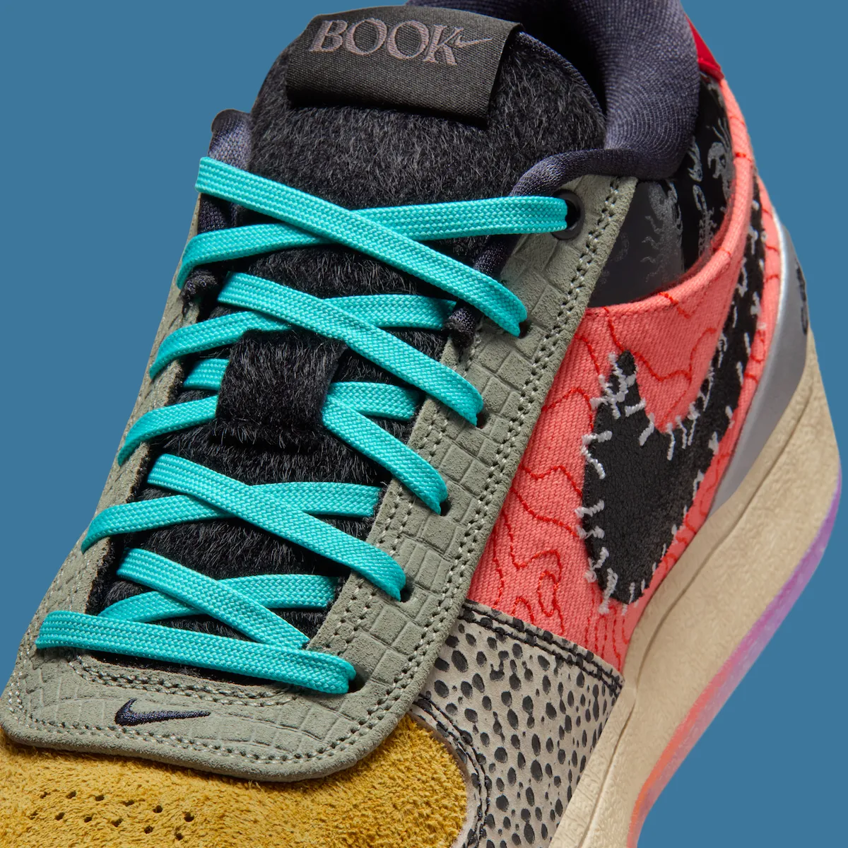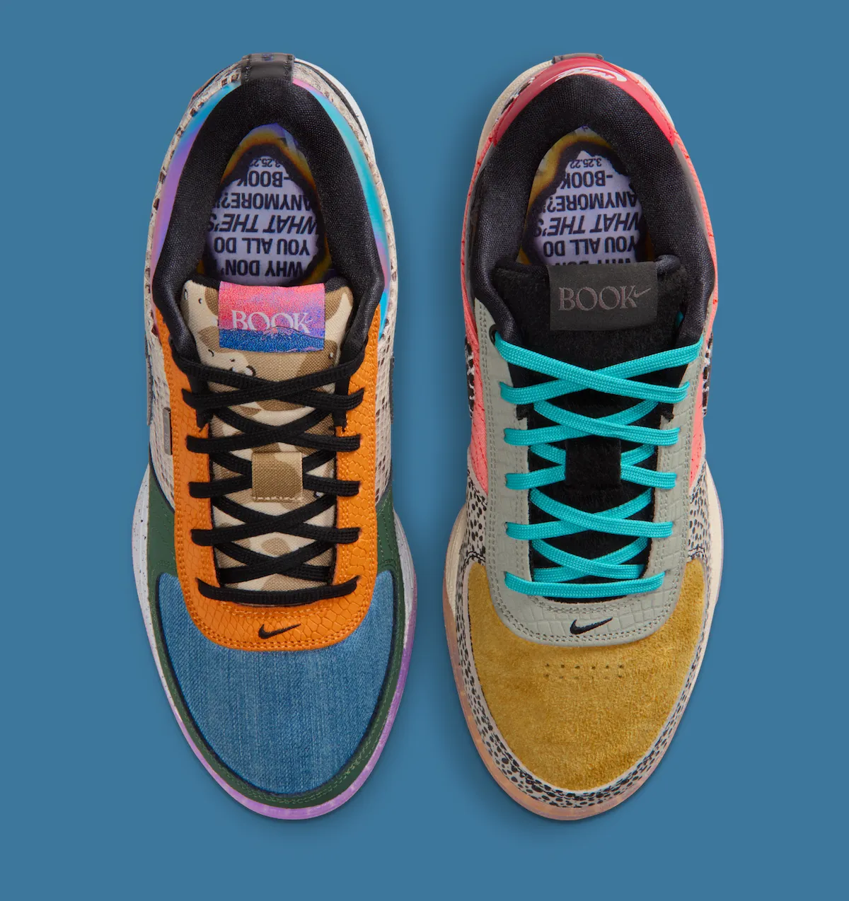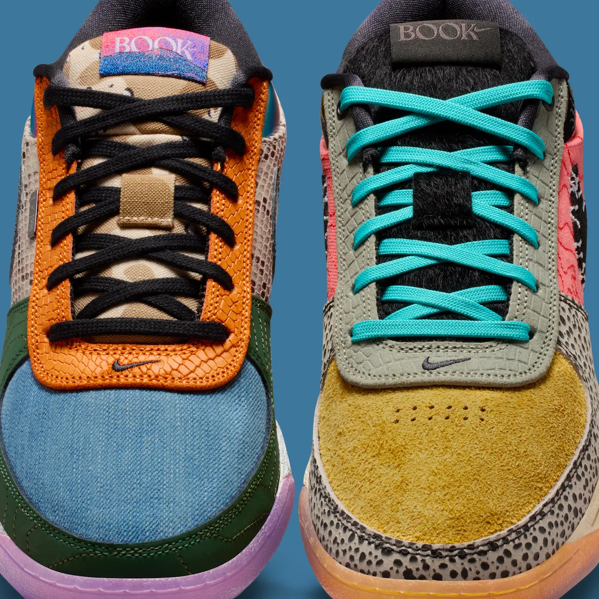 Booker initially showed off the pair at Suns Media Day, but fans got a first look at the sneakers ahead of Booker finally lacing them up for the first time on the court. The “What The” motif itself has long been a Nike staple, dating back to the 2007 What The Dunk, and it serves as a natural landing place for a mashup of aspects from previous colorways. With close to 30 Book 1 releases and several PEs in the collection’s history, the ideas for this one were abundant.