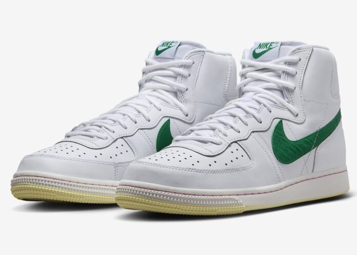 Decked in Sail, Malachite, Soft Pink, and Alabaster hues, this shoe boasts a Sail smooth leather base with breathability-enhancing perforations. Soft Pink suede overlays exude a refreshing spring ambiance. Standout features include Malachite accents on Swoosh logos, insoles, tongue labels, and heel tabs. A pristine White AF1 midsole atop a sturdy Alabaster rubber outsole completes the design.