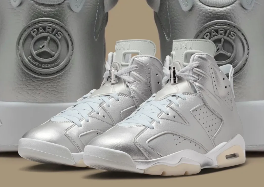 The PSG x Air Jordan 6 “Metallic Silver” releases Spring 2026 at Jordan Brand retail stores and Nike.com for $215 USD.
