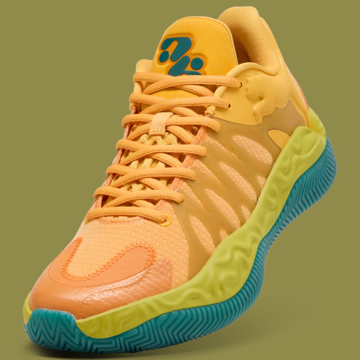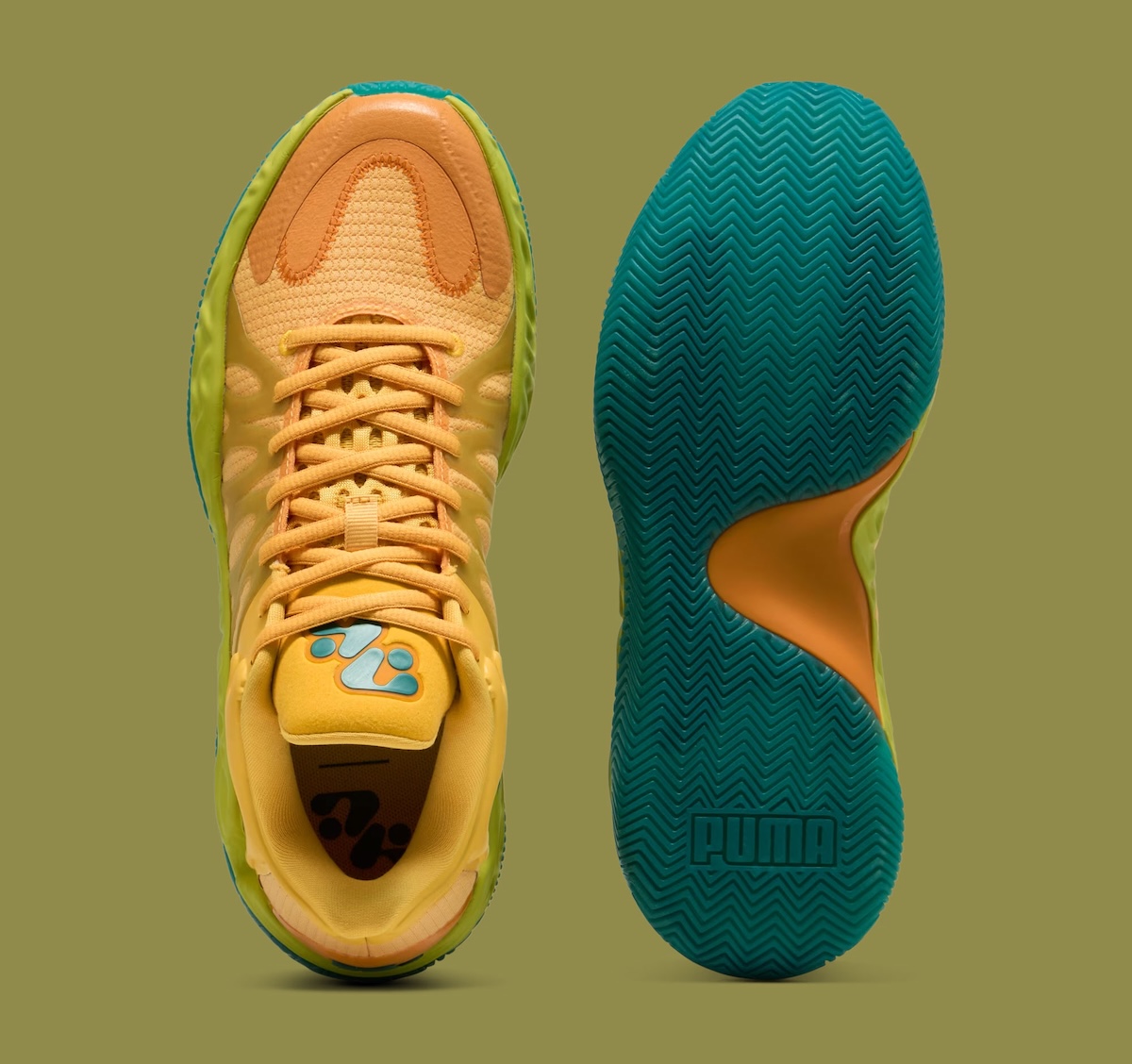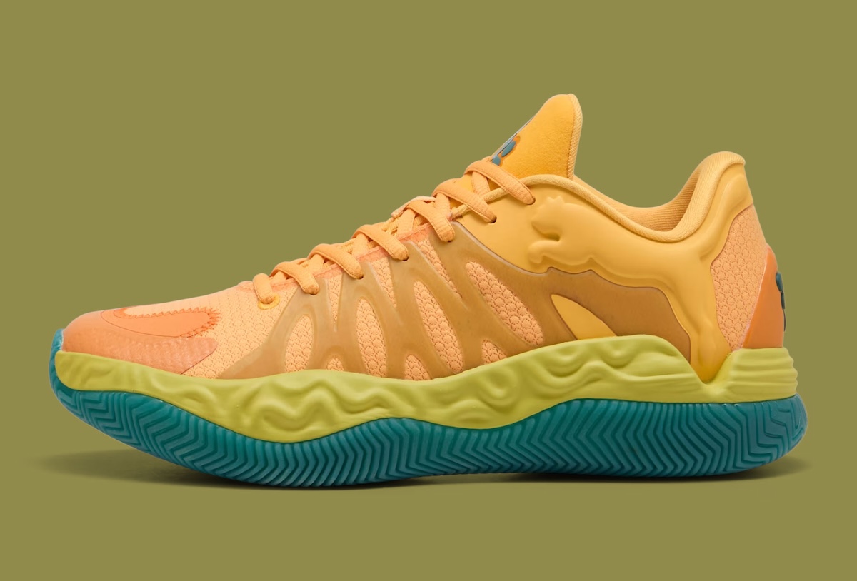 Underfoot, the midsole carries a slightly sculpted look that leans toward responsiveness. The outsole brings in a multi-directional traction pattern built for quick movement, with green details that tie everything together. It reads like a continuation of PUMA’s push toward lighter, more reactive performance models.
