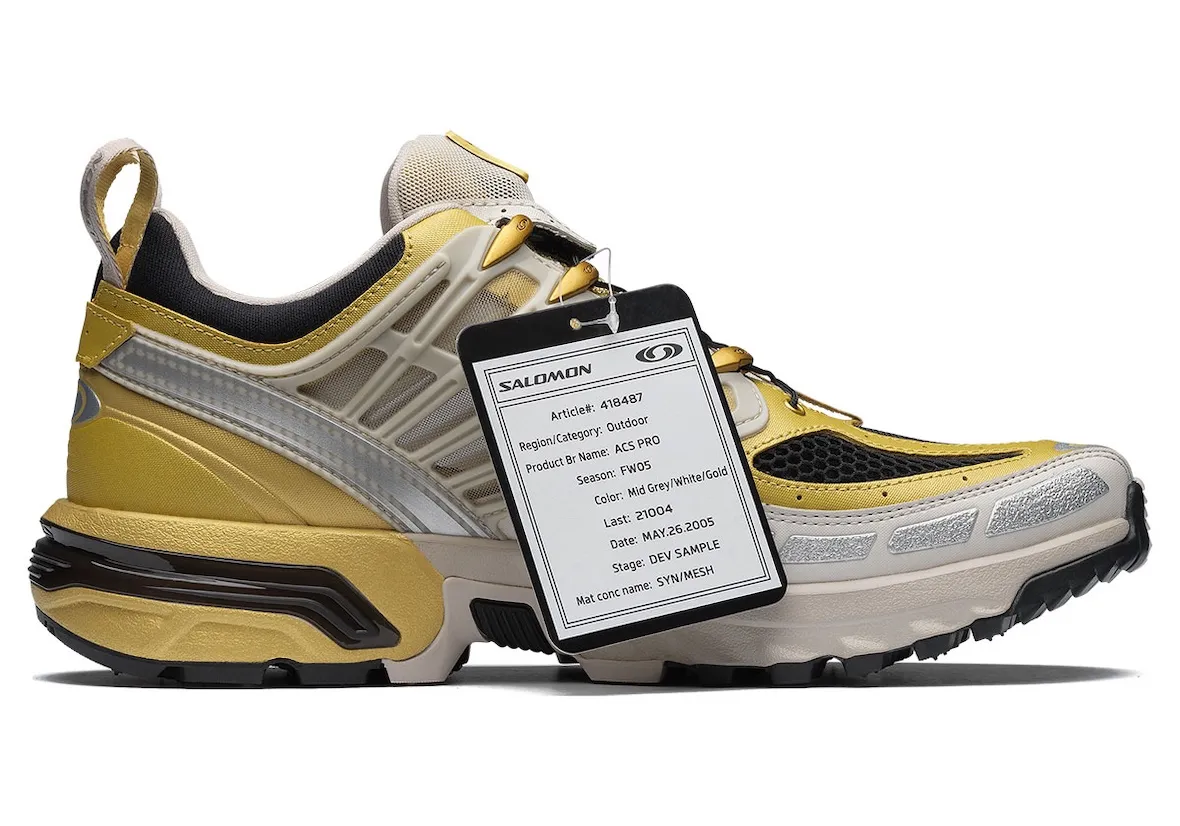 The Salomon ACS PRO “20th Anniversary” lands with a release that digs straight into the model’s earliest DNA. The brand dresses this pair in sharp silver and gold tones, pulling directly from a 2005 sample that never made it to shelves but still shaped how the ACS line evolved over the years. That small bit of history gives this edition a cool “full-circle” feel, especially since the silhouette shifted from a rugged trail runner to a street staple through collaborations with Jah Jah Paris, MM6 Maison Margiela, and KAR L’Art de l’Automobile.