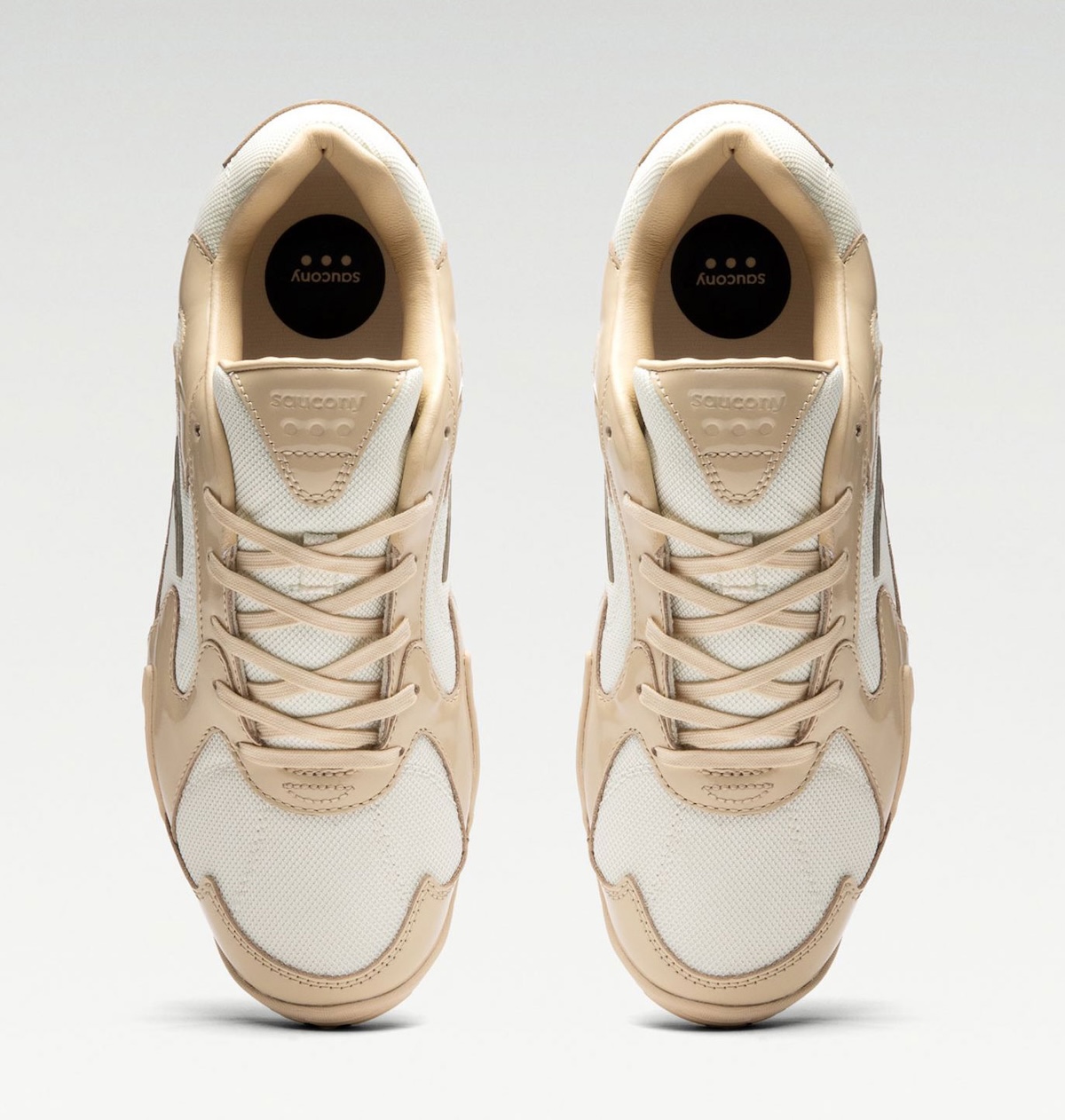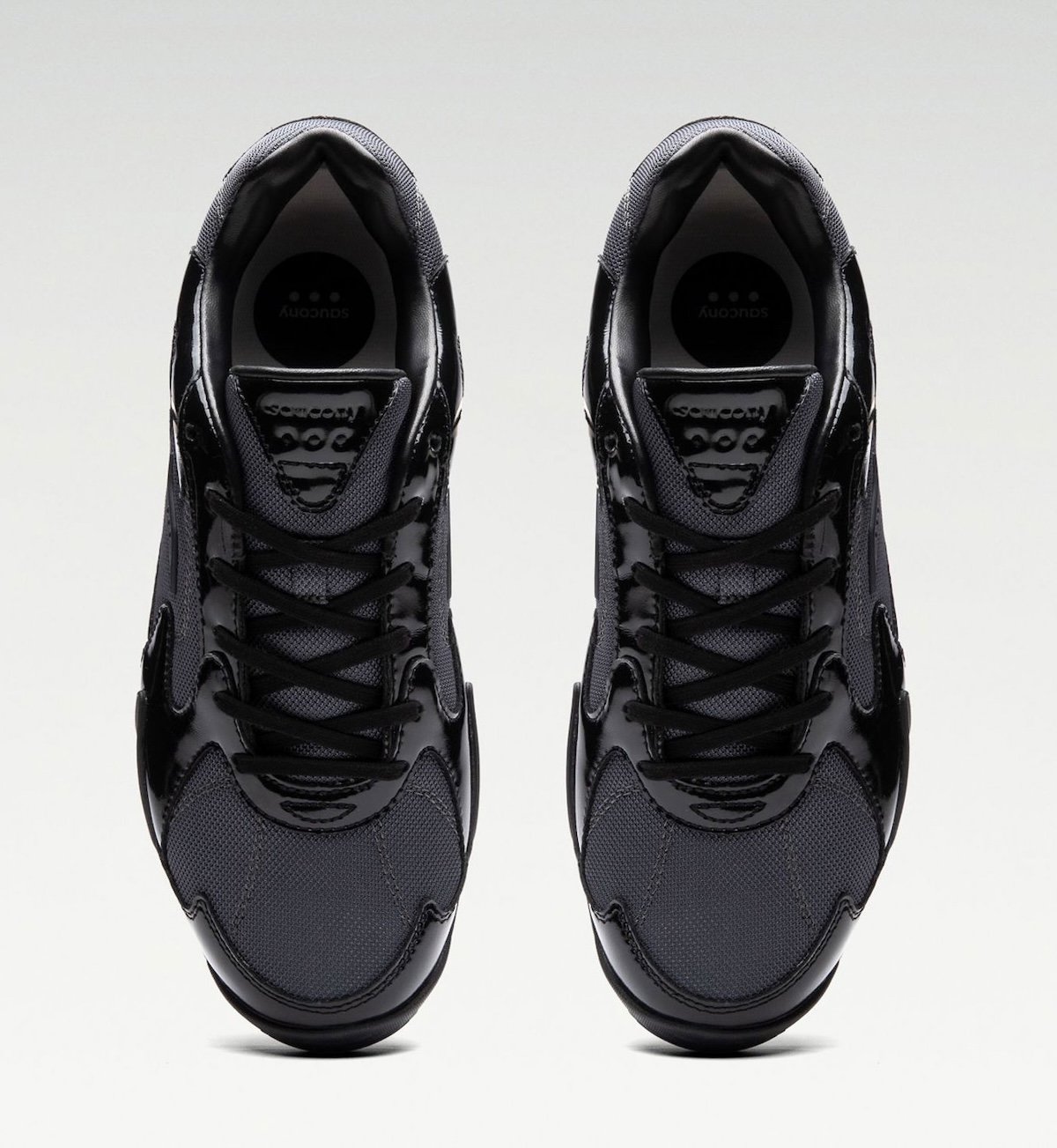 Featuring hard-edge design elements and patent leather overlays, the look is futuristic, yet still incorporates recognizable Saucony performance traits.