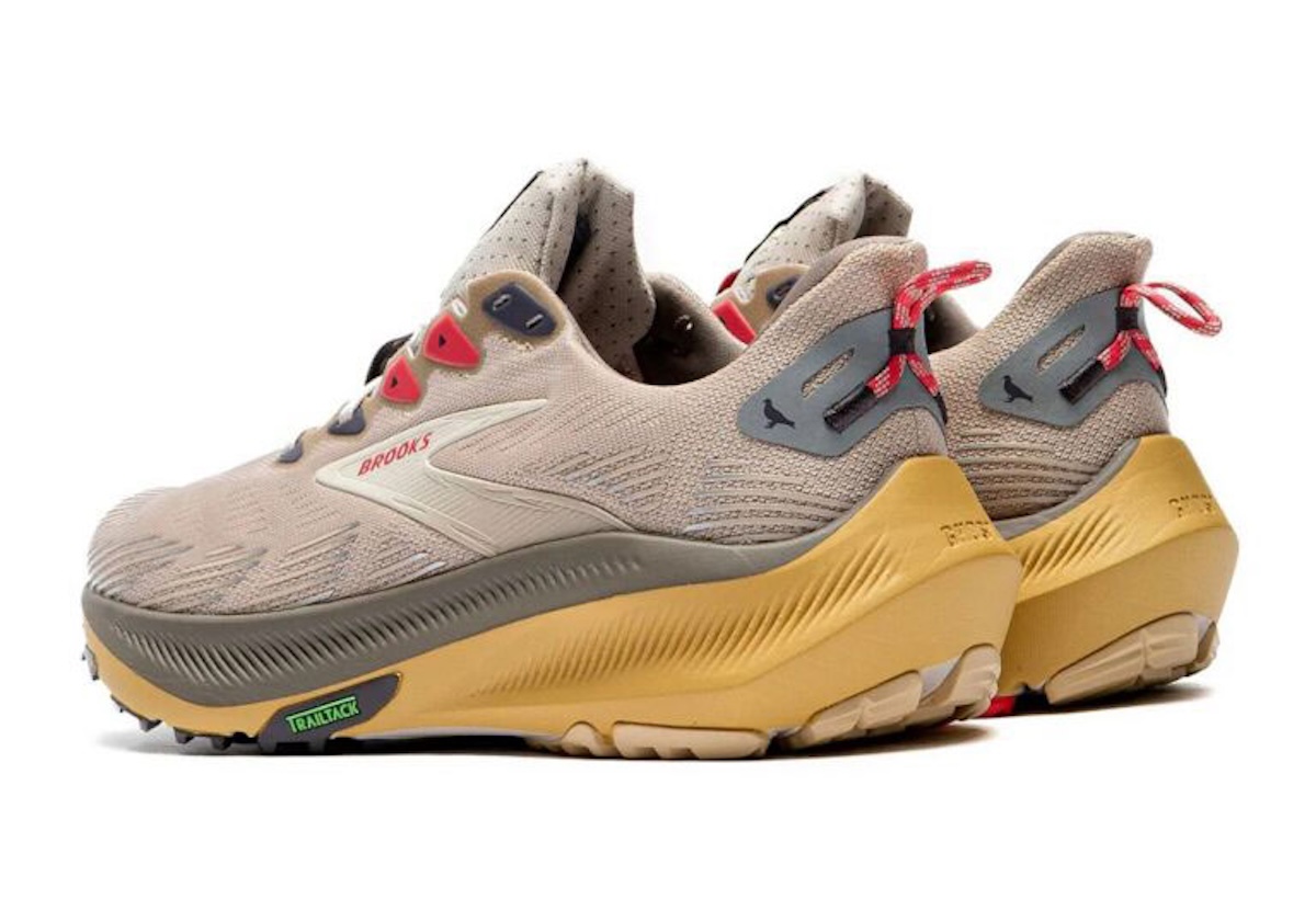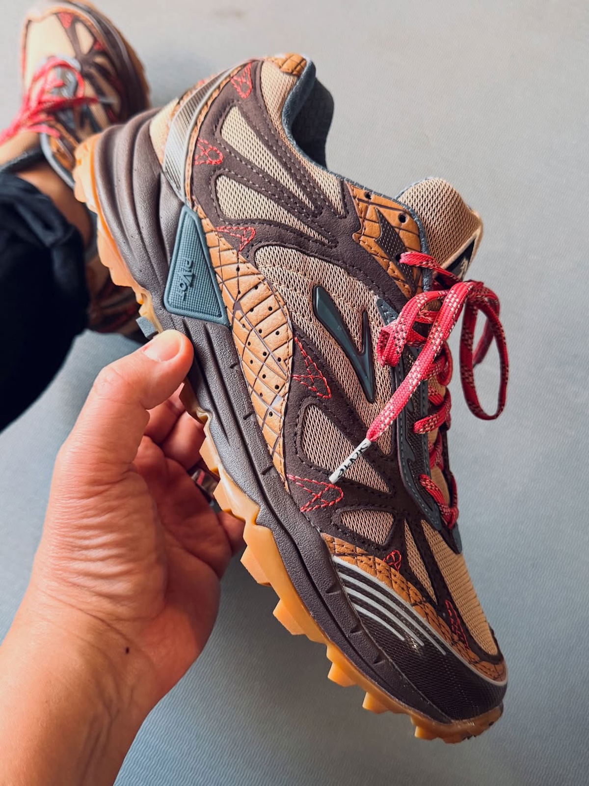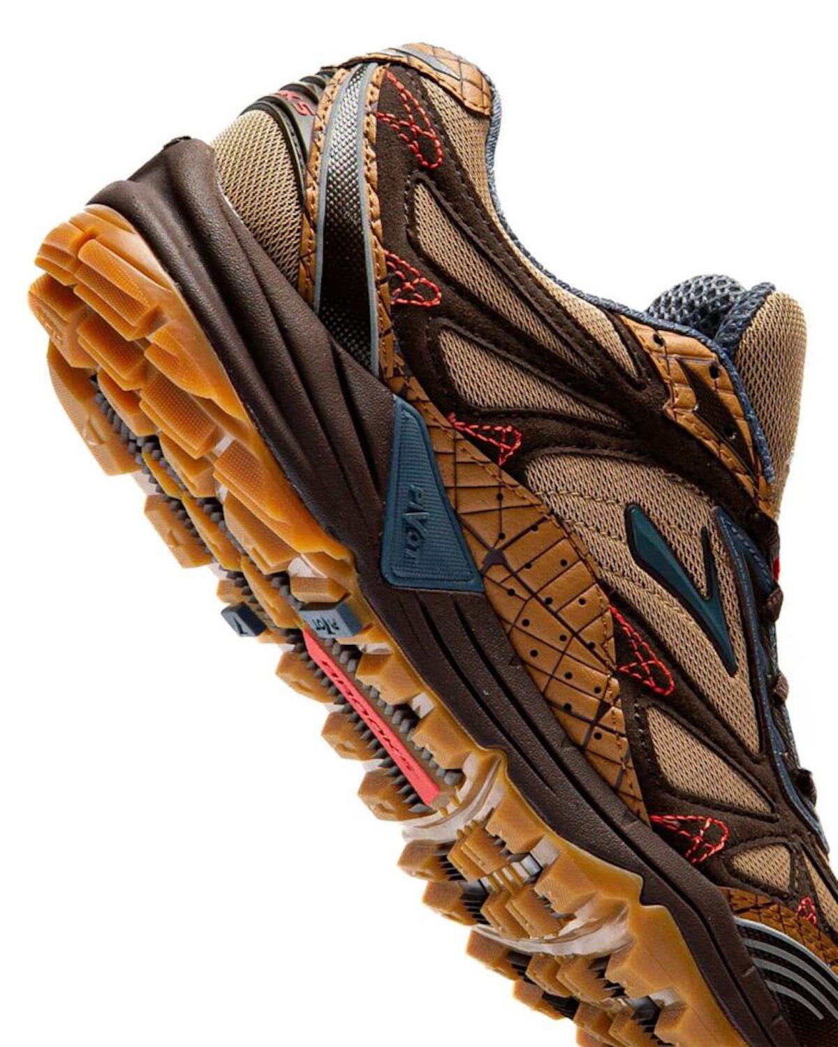 The Ghost Trail takes things one step further. Its one-piece tan mesh upper keeps the shoe feeling cleaner and more utilitarian. Meanwhile the grey-and-light-brown split midsole nods at modern cushioning technology without going overboard. Red laces and the heel pull tab help tie both shoes together, but it’s clear this sneaker favors comfort and daily utility.