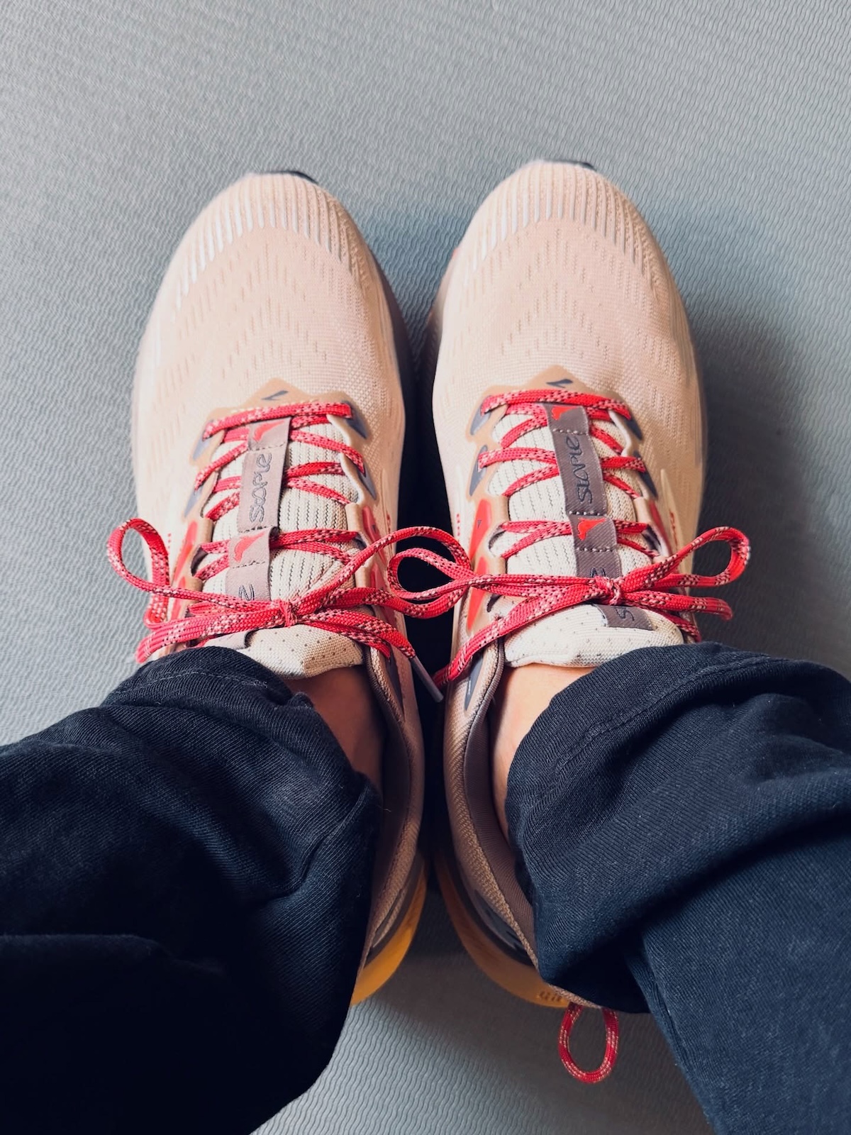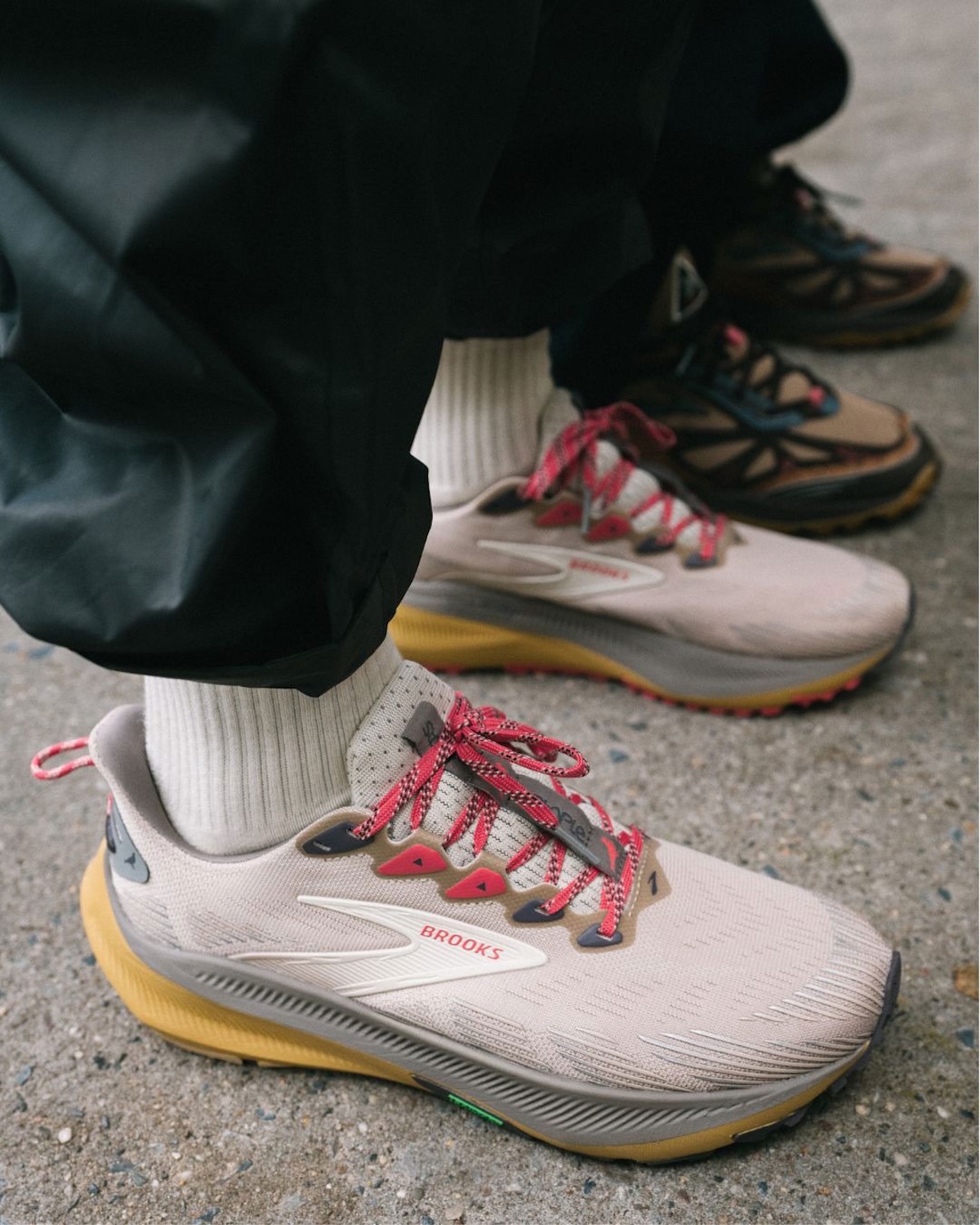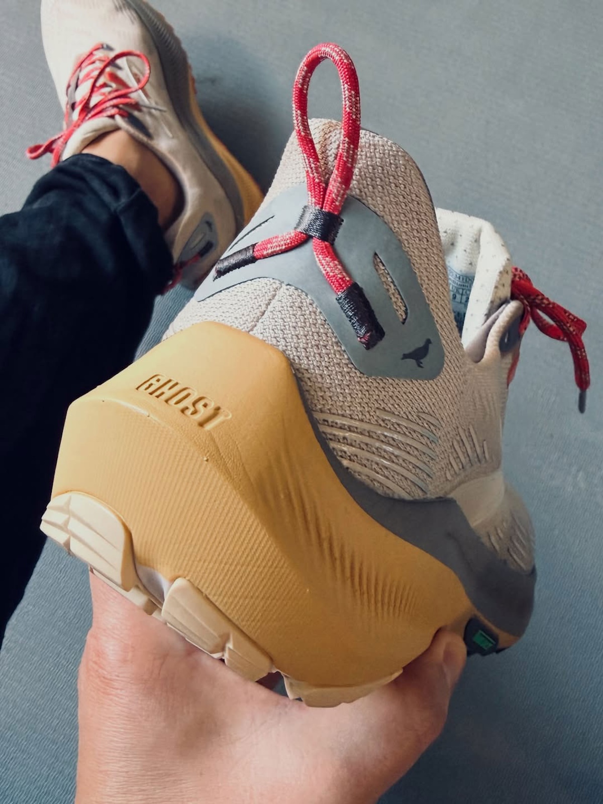 The Ghost Trail takes things one step further. Its one-piece tan mesh upper keeps the shoe feeling cleaner and more utilitarian. Meanwhile the grey-and-light-brown split midsole nods at modern cushioning technology without going overboard. Red laces and the heel pull tab help tie both shoes together, but it’s clear this sneaker favors comfort and daily utility.