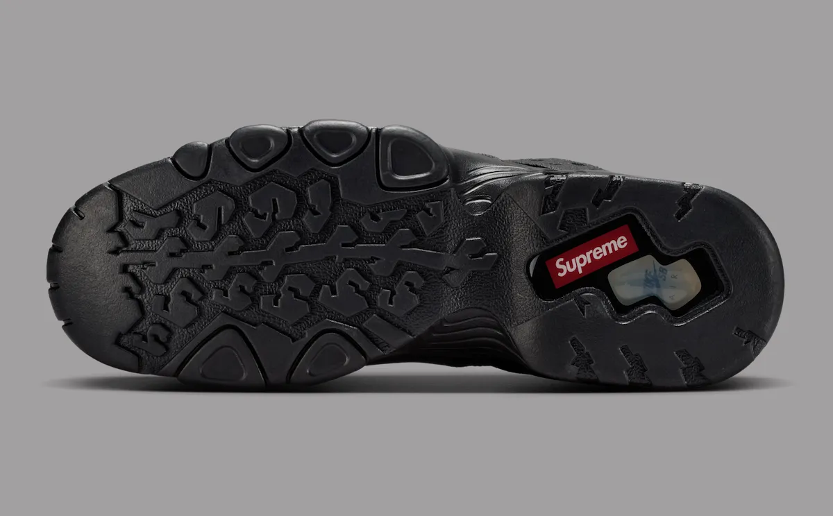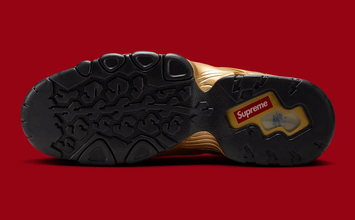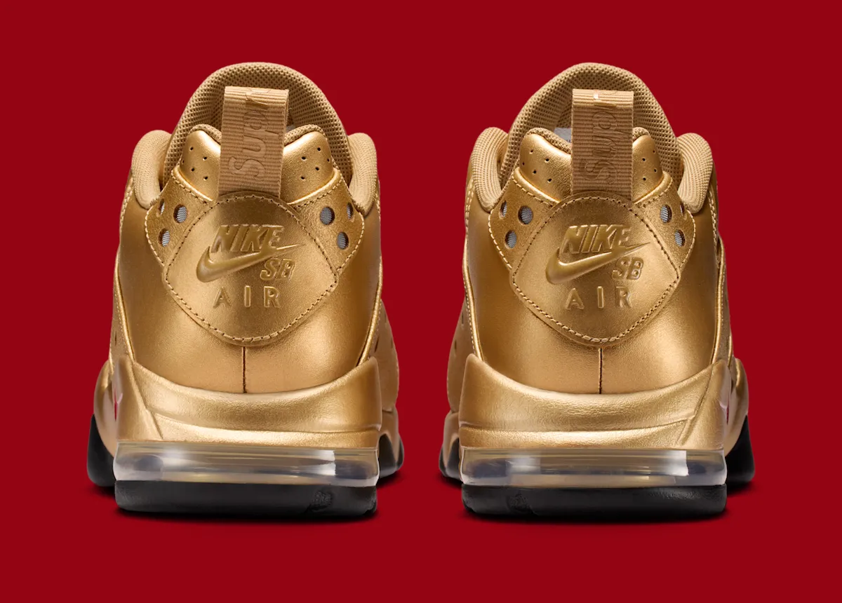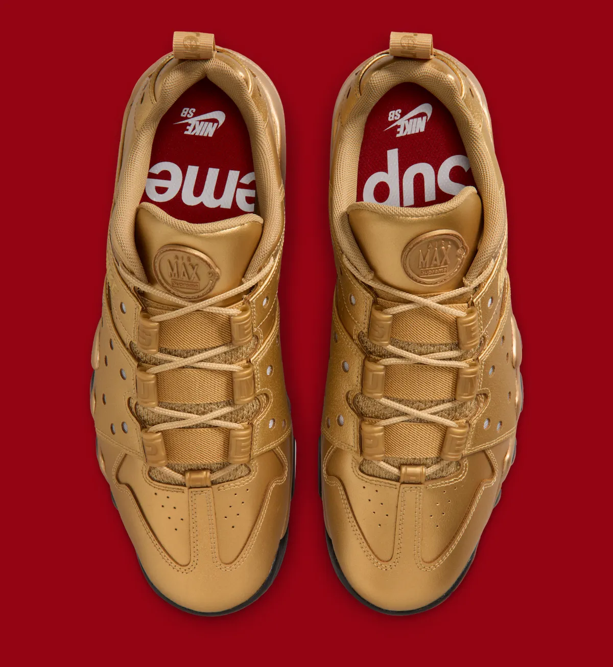 Coming in Black, White Gum, and Metallic Gold colorways, this pack of kicks maintains the lugged Air Max CB 94 Low construction with menacing teeth wrapped around the midsole while featuring its signature Nike Air. However, Supreme branding reshapes the identity, appearing on the tongues, heel tabs, insoles, and outsoles. Nike SB marks the back heels, reinforcing the skateboarding influence. This Supreme x Nike SB collaboration feels deliberate rather than experimental.