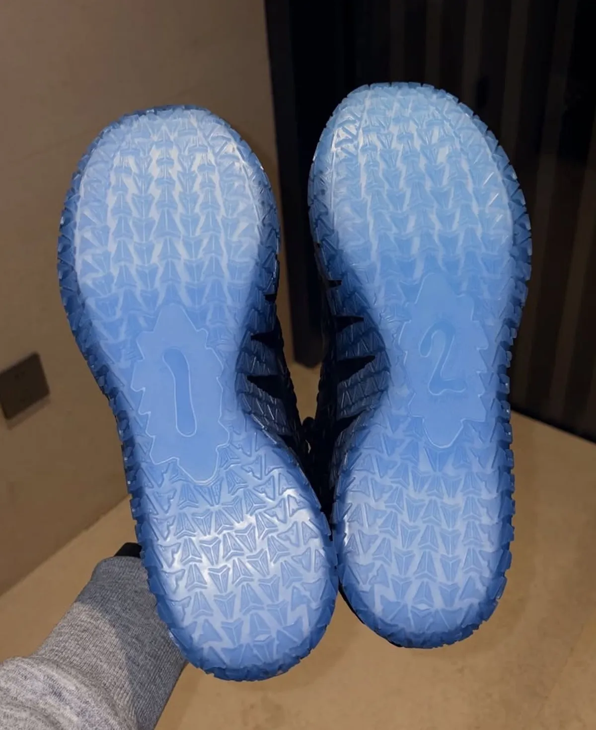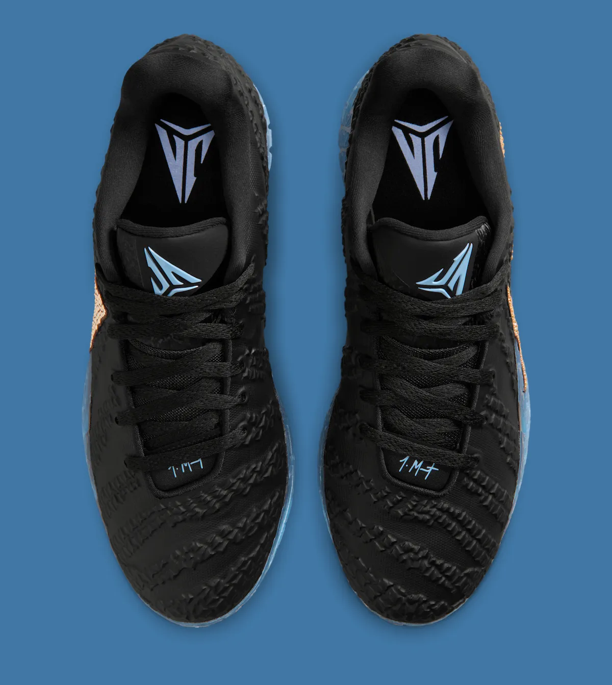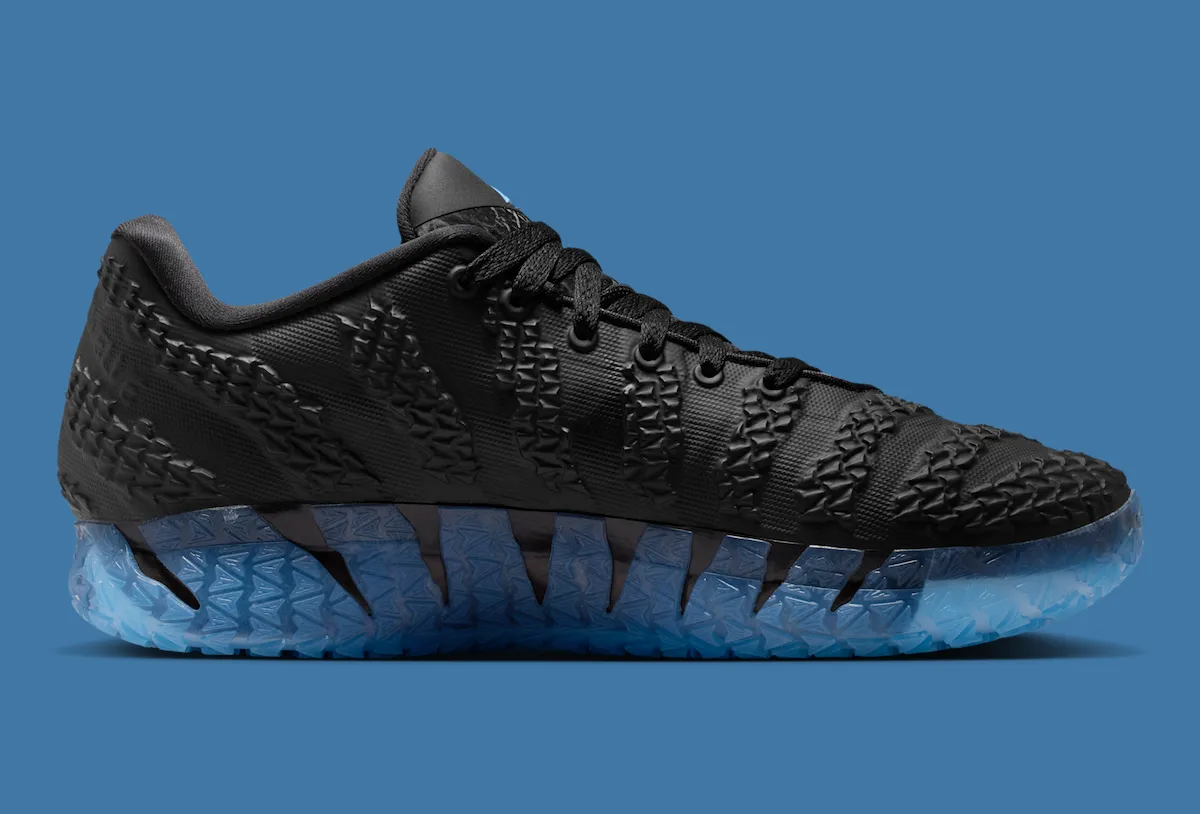 Material changes add to the elevated feel. This version swaps standard mesh and TPU for a full leather upper with embossed textures throughout. Light blue accents appear on Ja’s logo and supporting branding, while the icy, semi-translucent midsole reinforces the cold, polished aesthetic. Compared to earlier Ja 3 looks, this pair clearly targets visibility as much as performance.