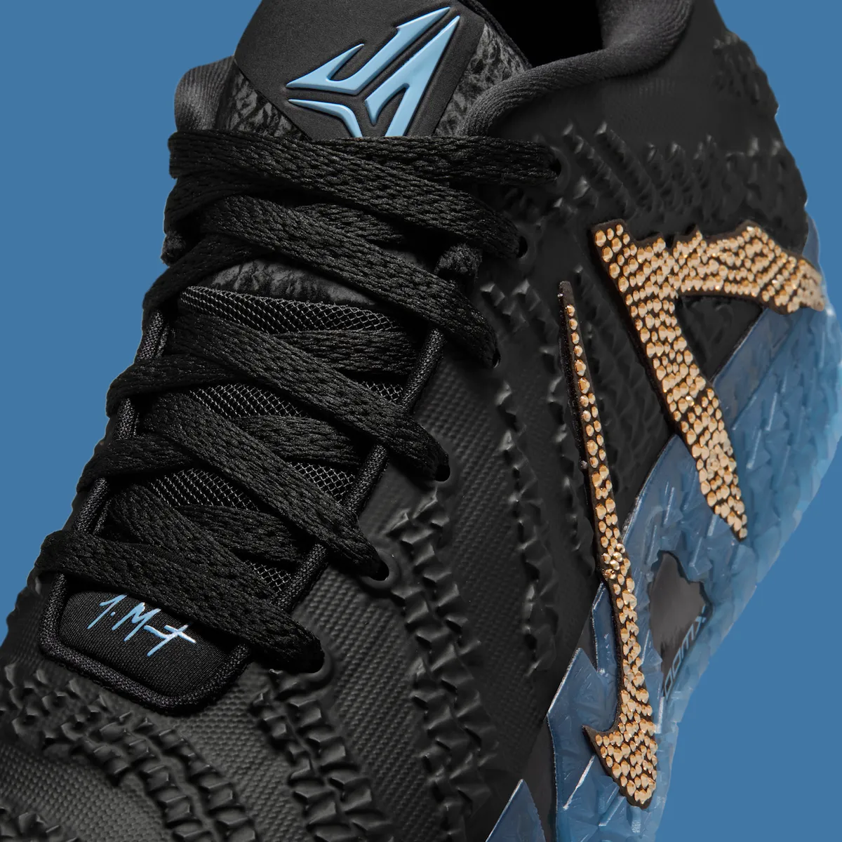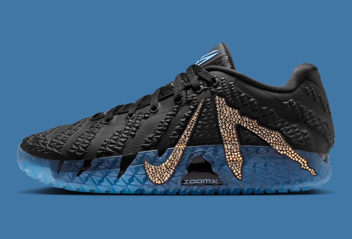 Crystal detailing has followed Morant since the Ja 1, but this pair pushes things further. The oversized lateral Swoosh and stylized “A” that spell out Ja’s name are fully covered in Swarovski crystals. That design choice turns the model’s most recognizable feature into the focal point, especially under arena lights. It’s flashy, but still intentional.
