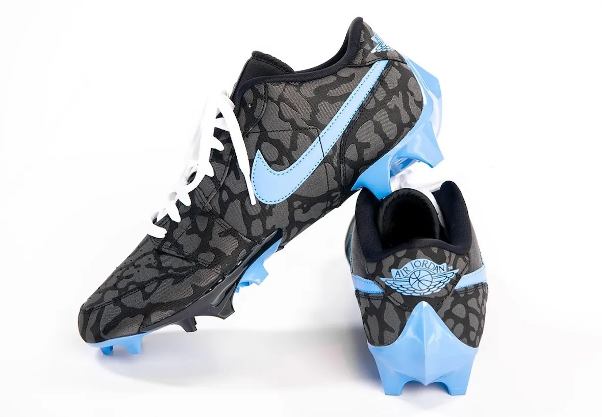 The Air Jordan 1 Low Cleat takes a different route, with the basketball silhouette on a black and grey elephant print base, with baby blue accents on the Swoosh, Wings logo, and outsole. These sneakers feature various textures, including synthetic satin, matte overlays, to achieve the sharp, yet subtle take on the AJ1, staying true to the classic lifestyle roots of the sneaker.