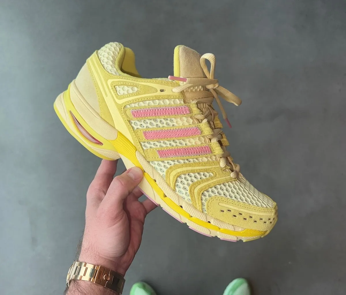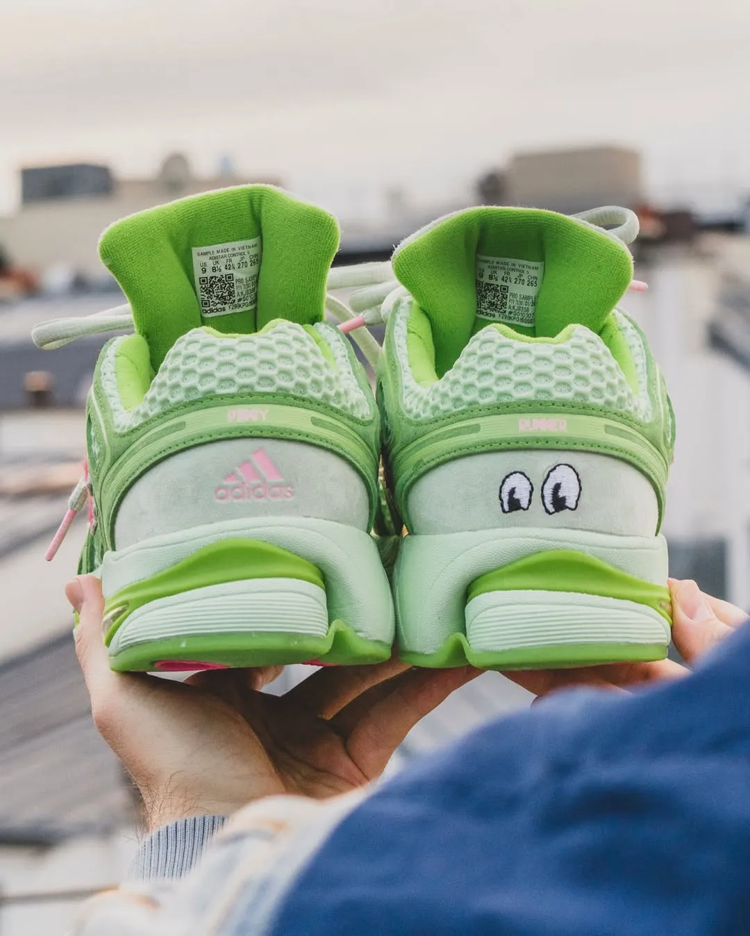 Paris imagery showed the Unheardof x adidas Adistar Control 5 Piggy Runner 2.0 styled with champagne and pastries. It framed the sneaker as a lifestyle piece rather than a product shot. That approach fits Unheardof’s storytelling identity.