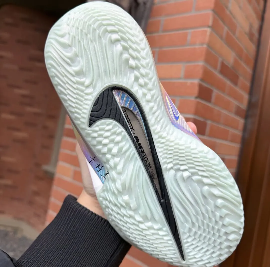 Details remain deliberate. A mini Swoosh lands near the toe, offset lacing sharpens the futuristic profile, and brown suede on the tongue tempers the gloss. Compared to earlier GT Cut PEs, this version feels more sculptural, leaning closer to wearable concept design than standard team footwear.